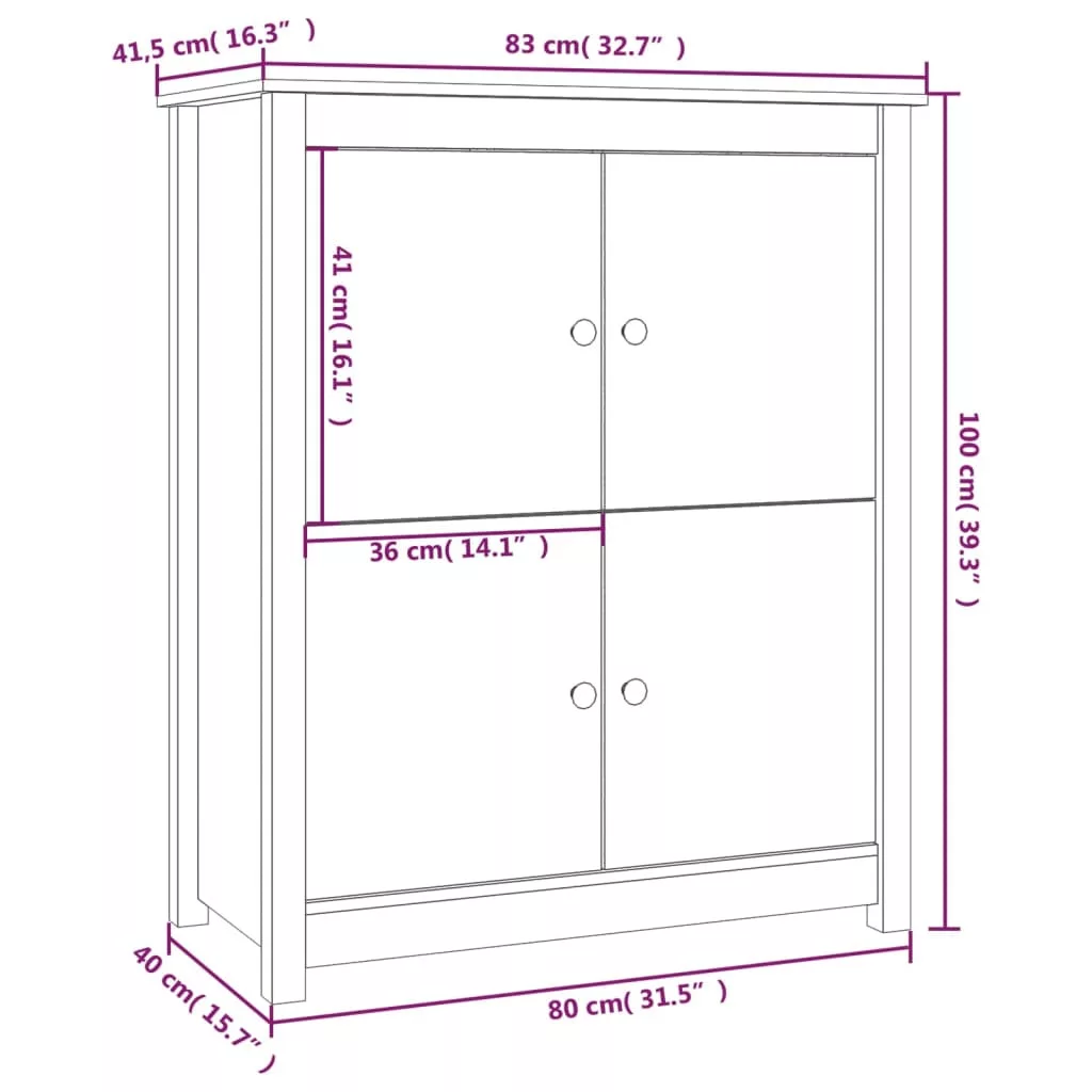 Ez a minimalista stílusú fa tálalószekrény otthona praktikus és rendkívül dekoratív kiegészítője lesz! Természetes anyag: A tömör fenyőfa egy gyönyörű természetes anyag. A fenyőfa egyenes erezetű, a csomók pedig jellegzetes, rusztikus megjelenést kölcsönöznek a bútornak.Bőséges tárolóhely: A tálalószekrény 4 nagy rekesszel rendelkezik, amelyek elegendő helyet nyújtanak könyvek, multimédiás eszközök és egyéb fontos kellékek számára.Masszív felső lap: A tálalószekrény felső lapja ideális kedvenc dísztárgyai, képkeretei vagy cserepes növényei elhelyezésére.Egyedi stílus: Vigyen egyedi stílust környezetébe! A vidékies stílus tökéletes egyensúlyba hozza a formát és a stílust, miközben rusztikus és modern hangulatot kölcsönöz. Megjegyzés:Az egyszerű összeszerelés érdekében minden termékhez mellékelünk összeszerelési útmutatót. Figyelem:A dőlés megakadályozása érdekében a terméket a mellékelt tartóelem segítségével rögzíteni kell a falhoz.