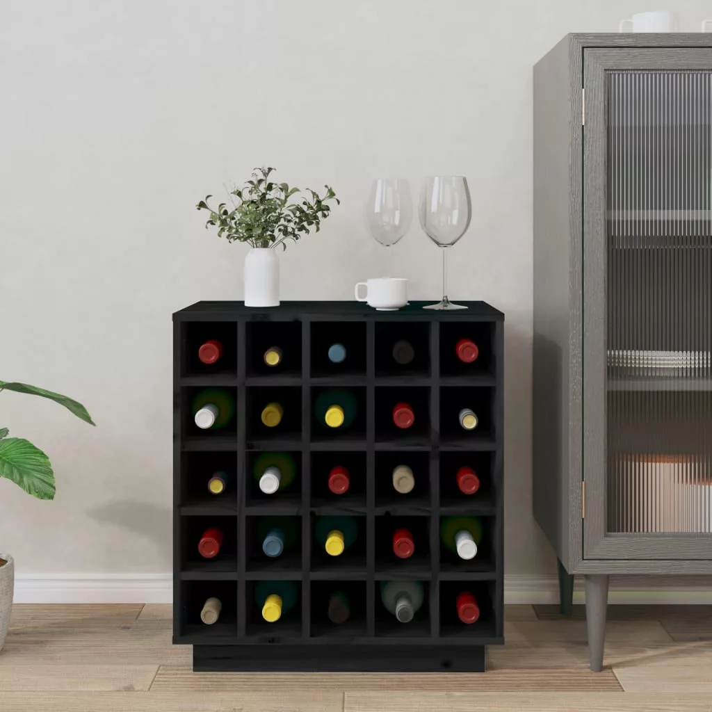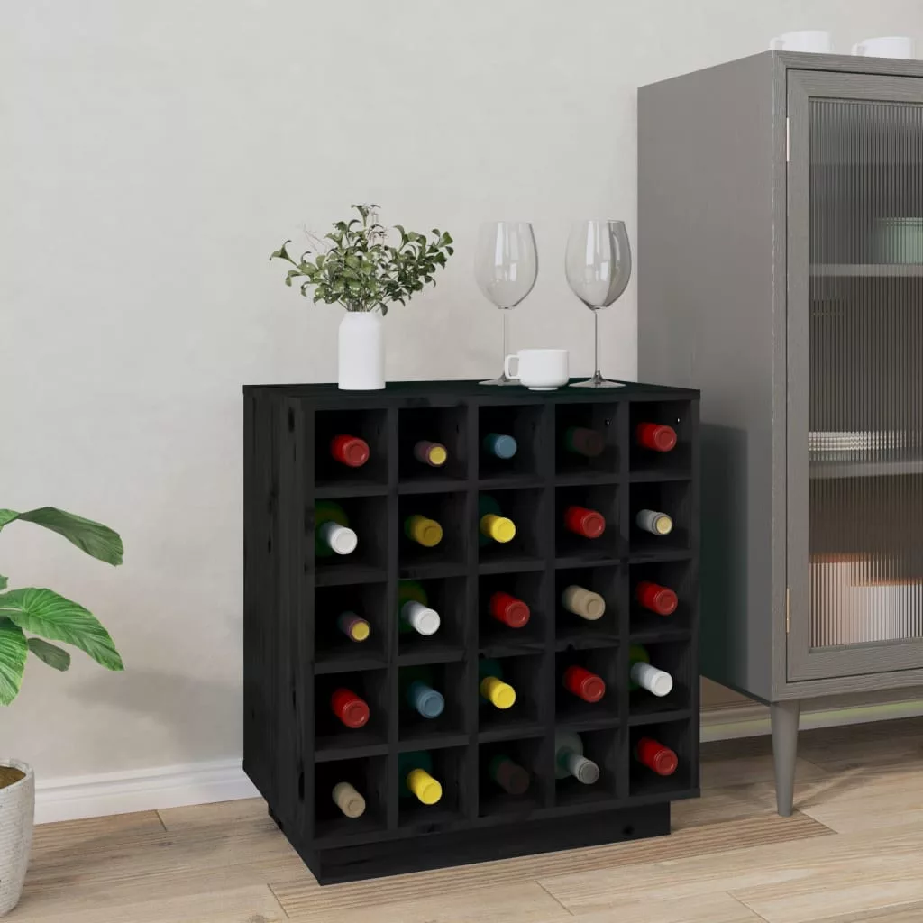 fekete tömör fenyőfa borszekrény 55,5x34x61 cm