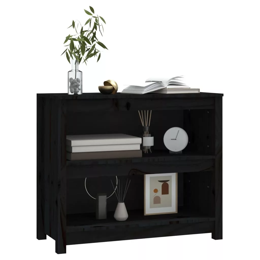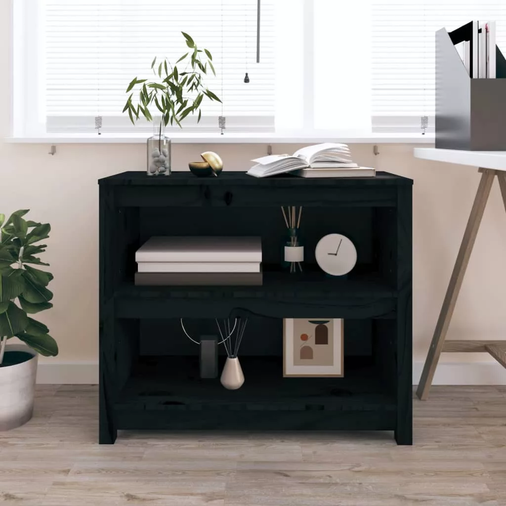 fekete tömör fenyőfa könyvszekrény 80x35x68 cm