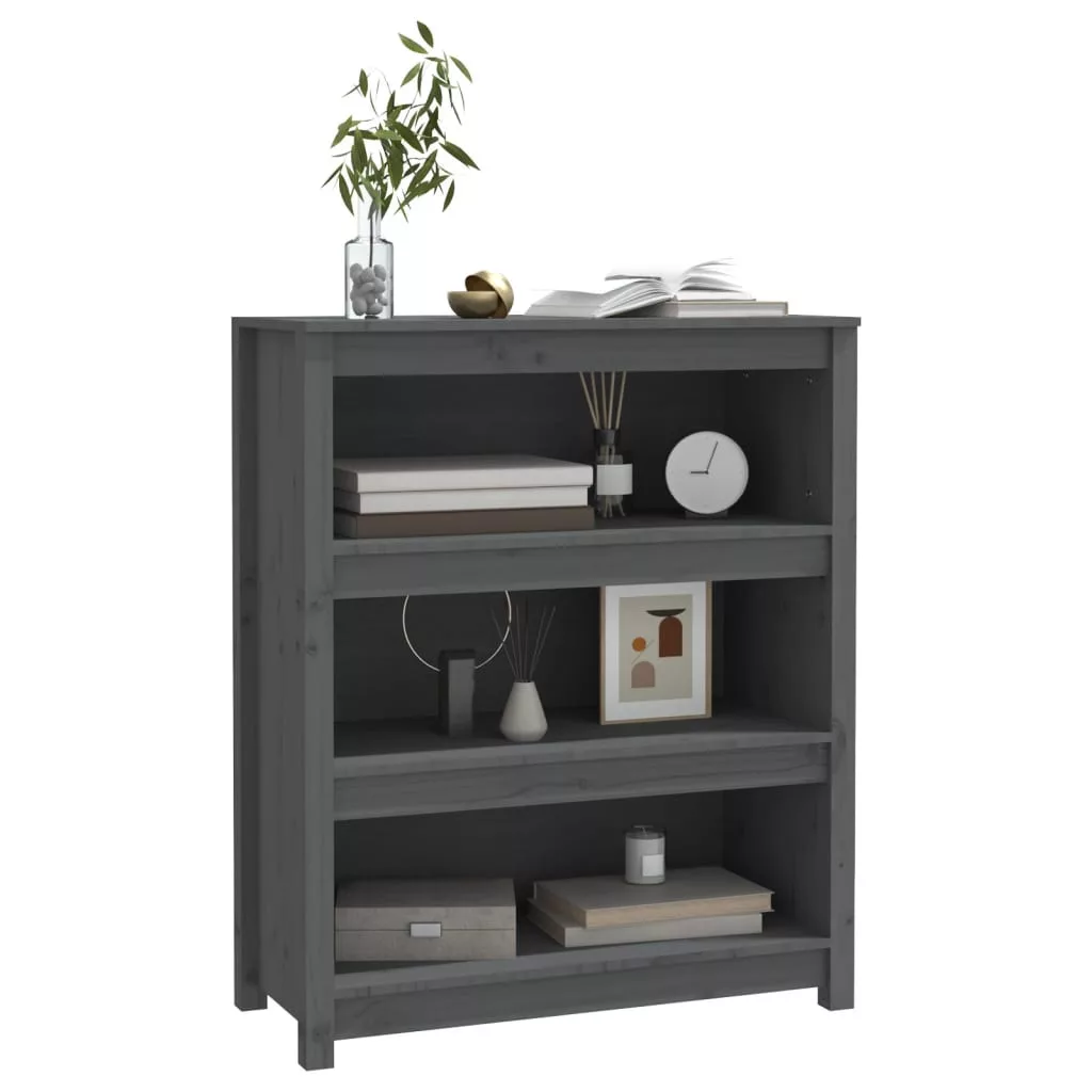 szürke tömör fenyőfa könyvszekrény 80x35x97 cm