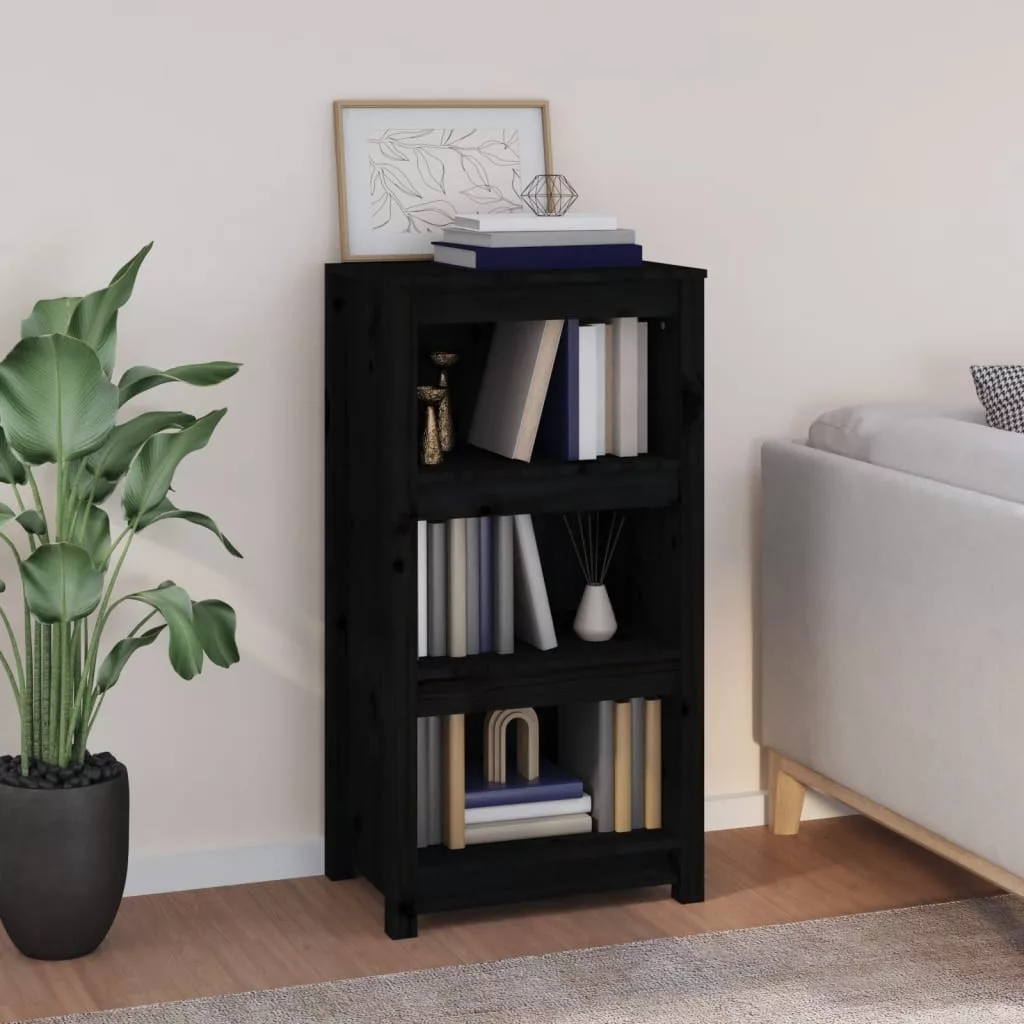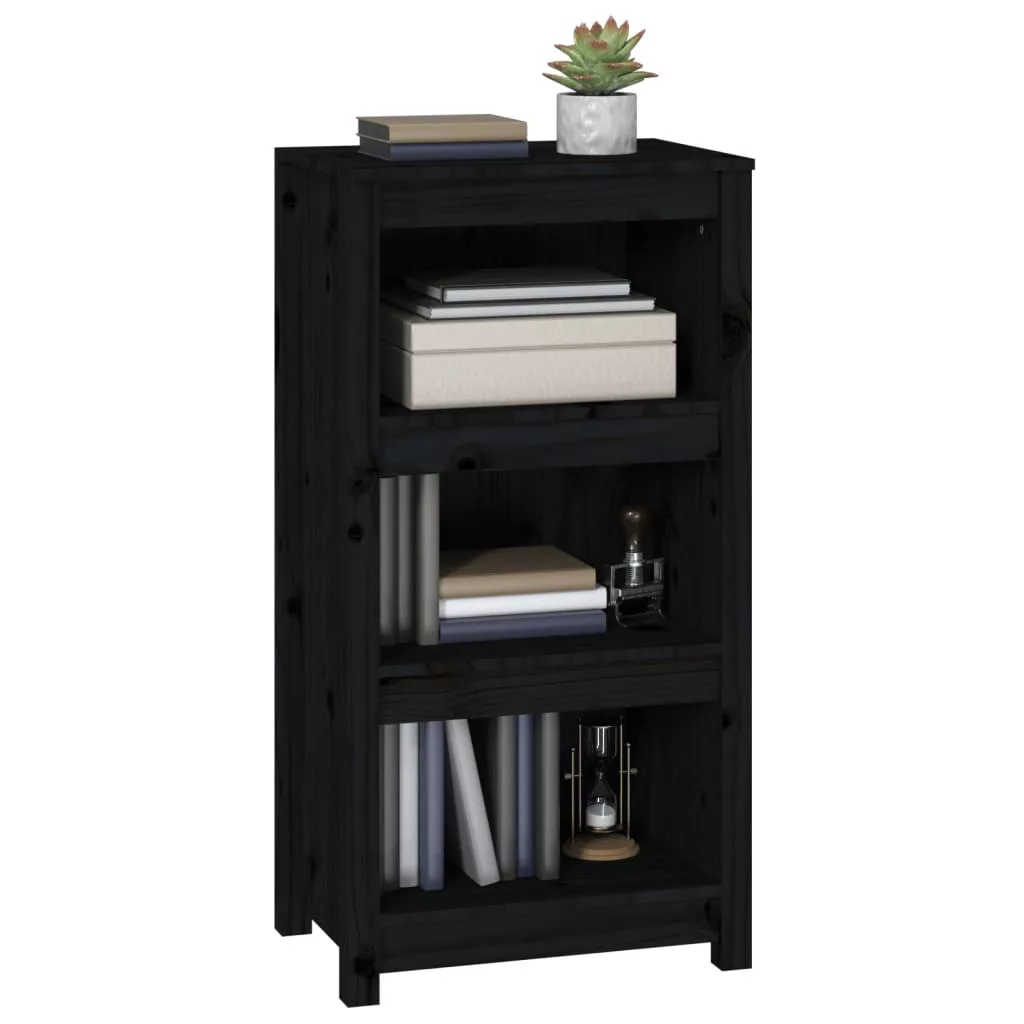 fekete tömör fenyőfa könyvszekrény 50 x 35 x 97 cm