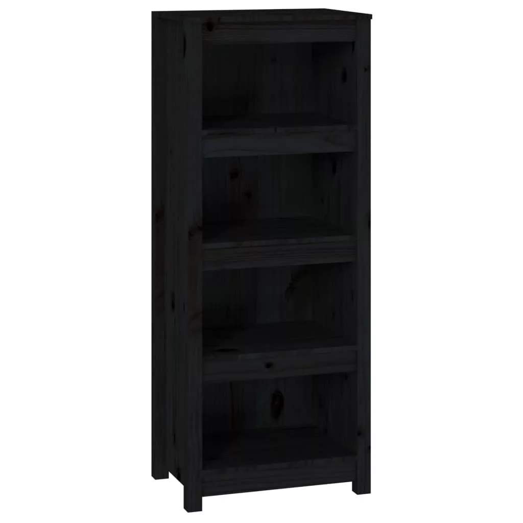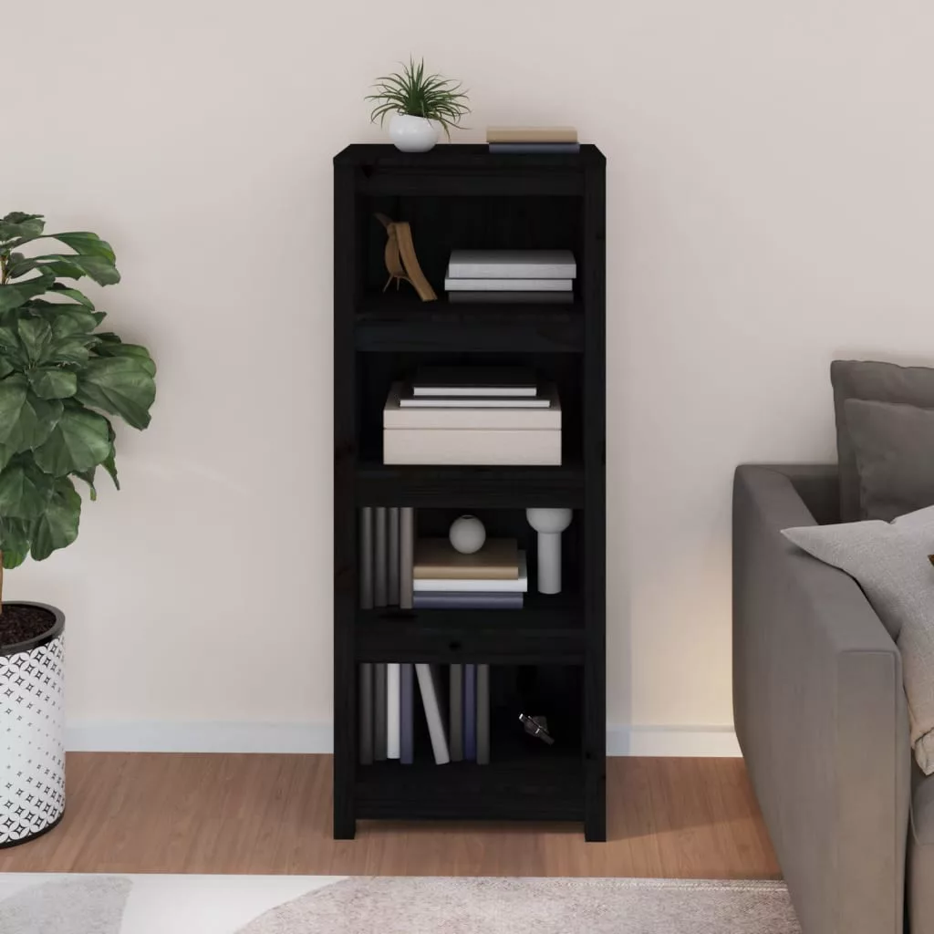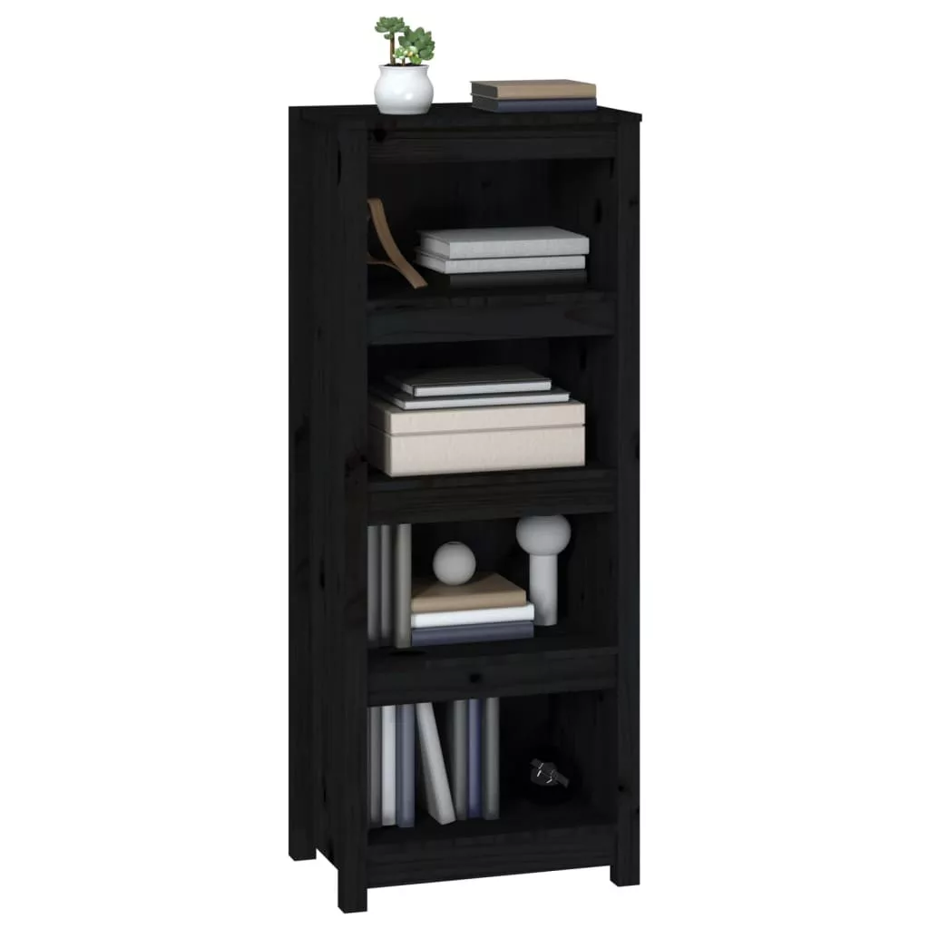 fekete tömör fenyőfa könyvszekrény 50x35x125,5 cm