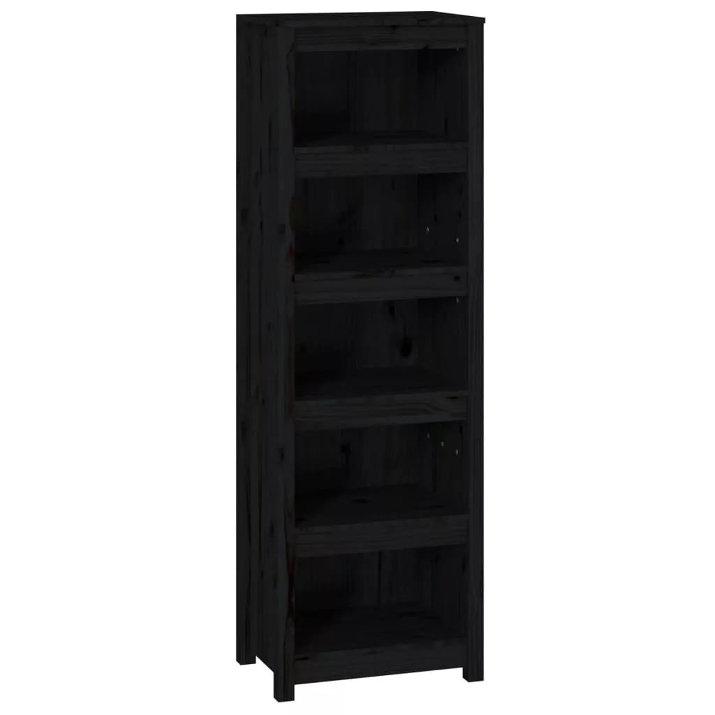 fekete tömör fenyőfa könyvszekrény 50x35x154 cm