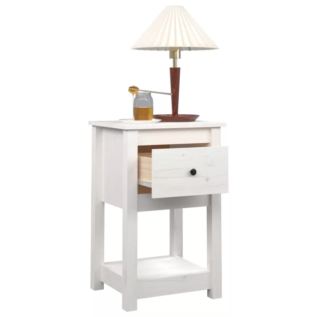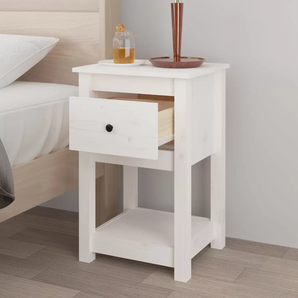 fehér tömör fenyőfa éjjeliszekrény 40 x 35 x 61,5 cm