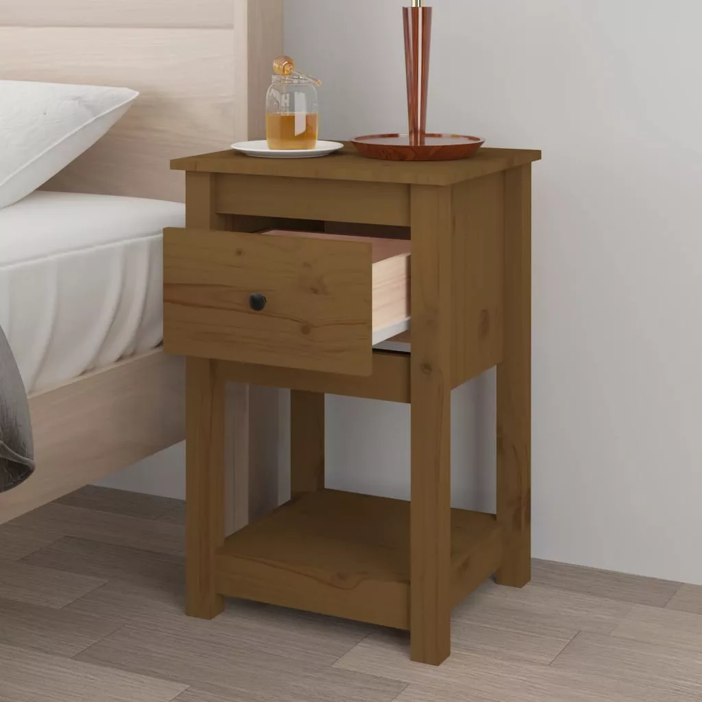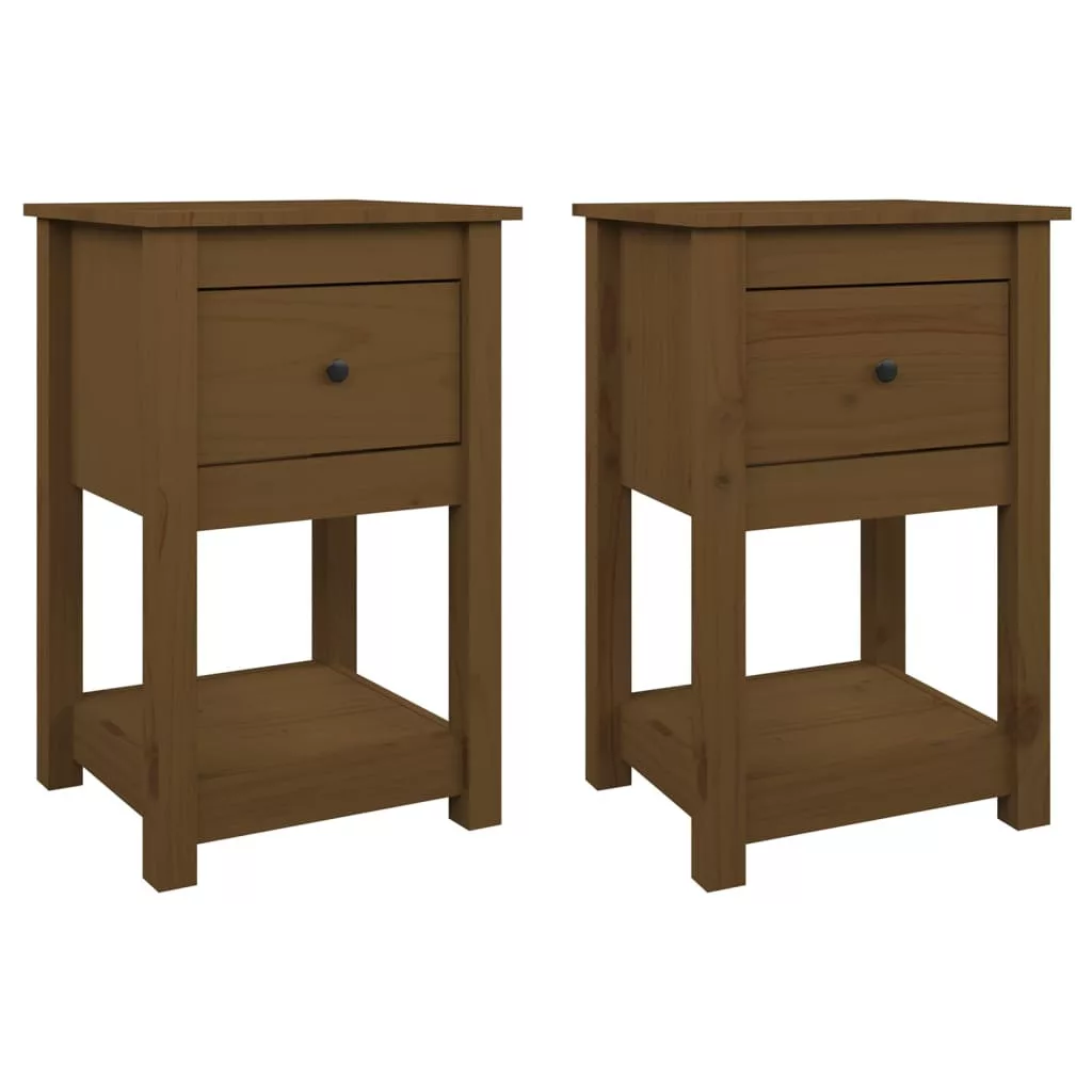 2 darab mézbarna tömör fenyőfa éjjeliszekrény 40x35x61,5 cm