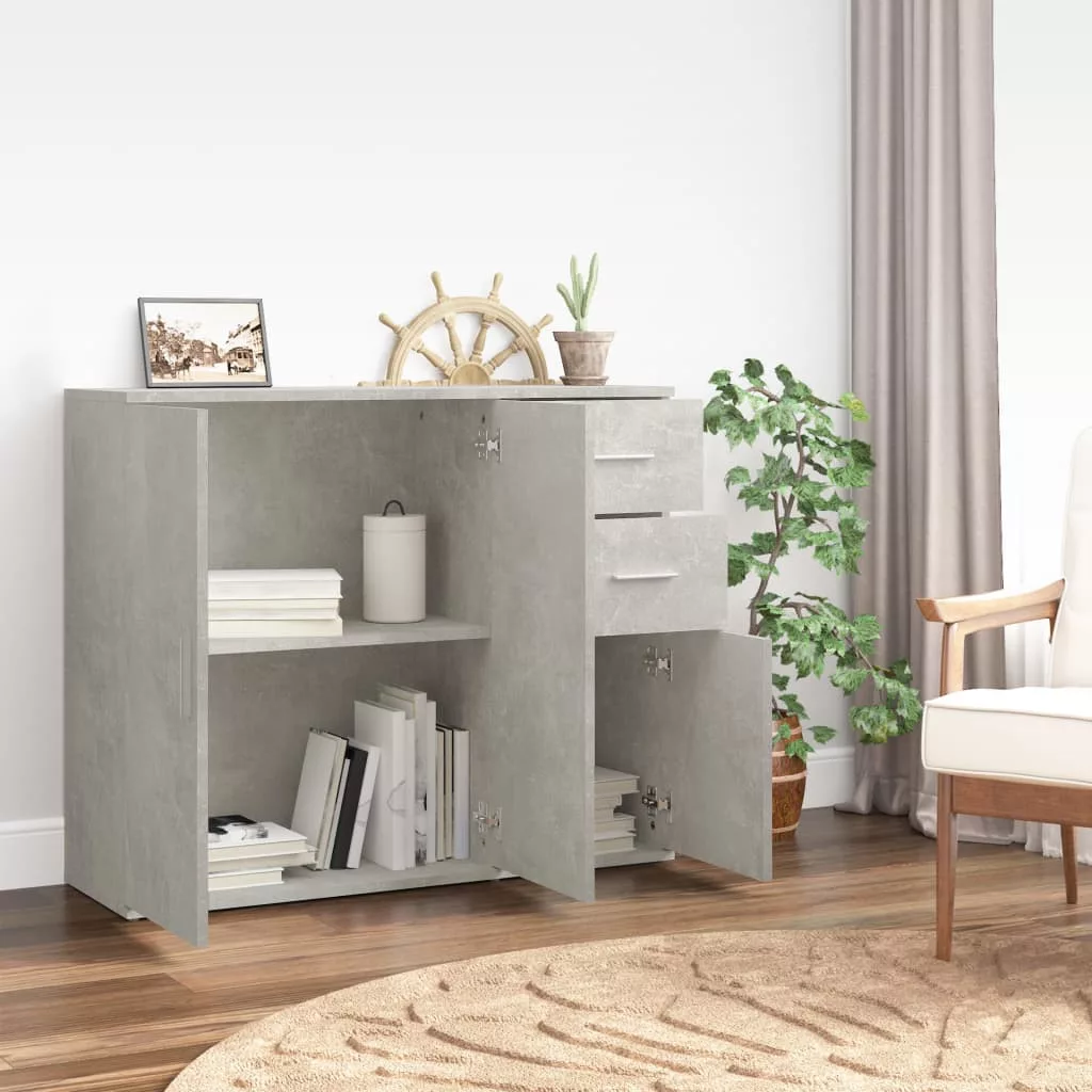betonszürke szerelt fa tálalószekrény 91x29,5x75 cm