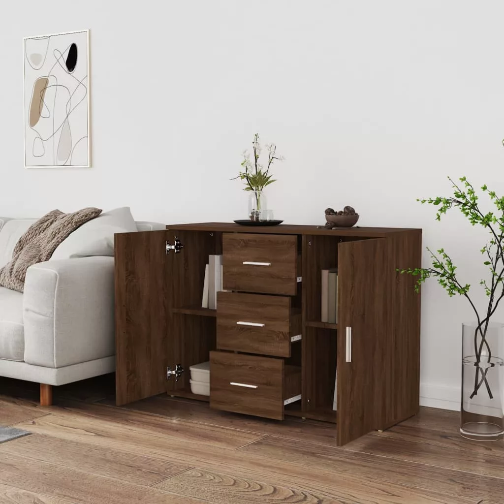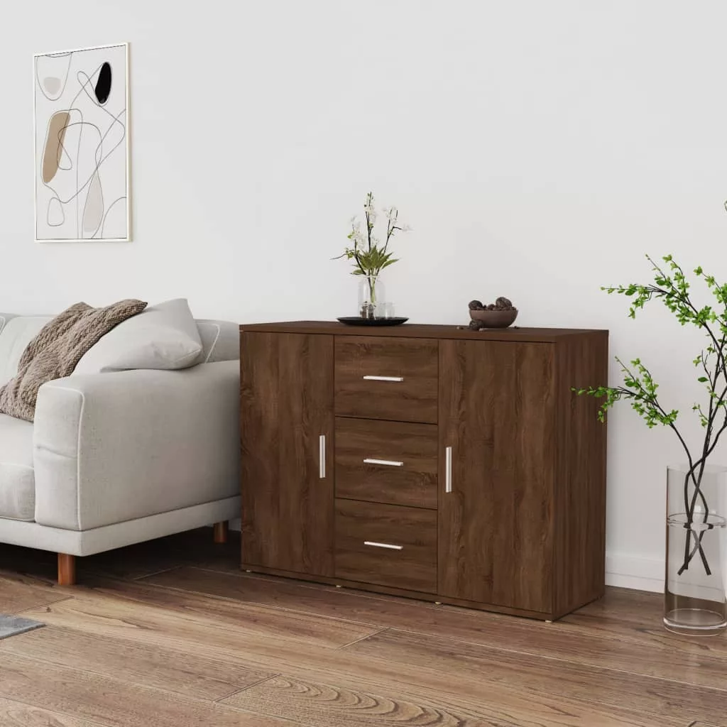barna tölgyszínű szerelt fa tálalószekrény 91 x 29,5 x 65 cm