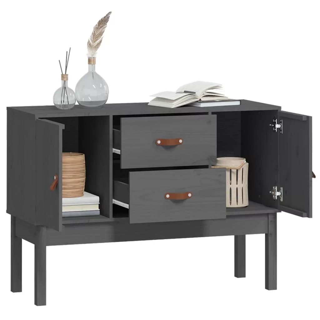 szürke tömör fenyőfa tálalószekrény 110 x 40 x 78 cm