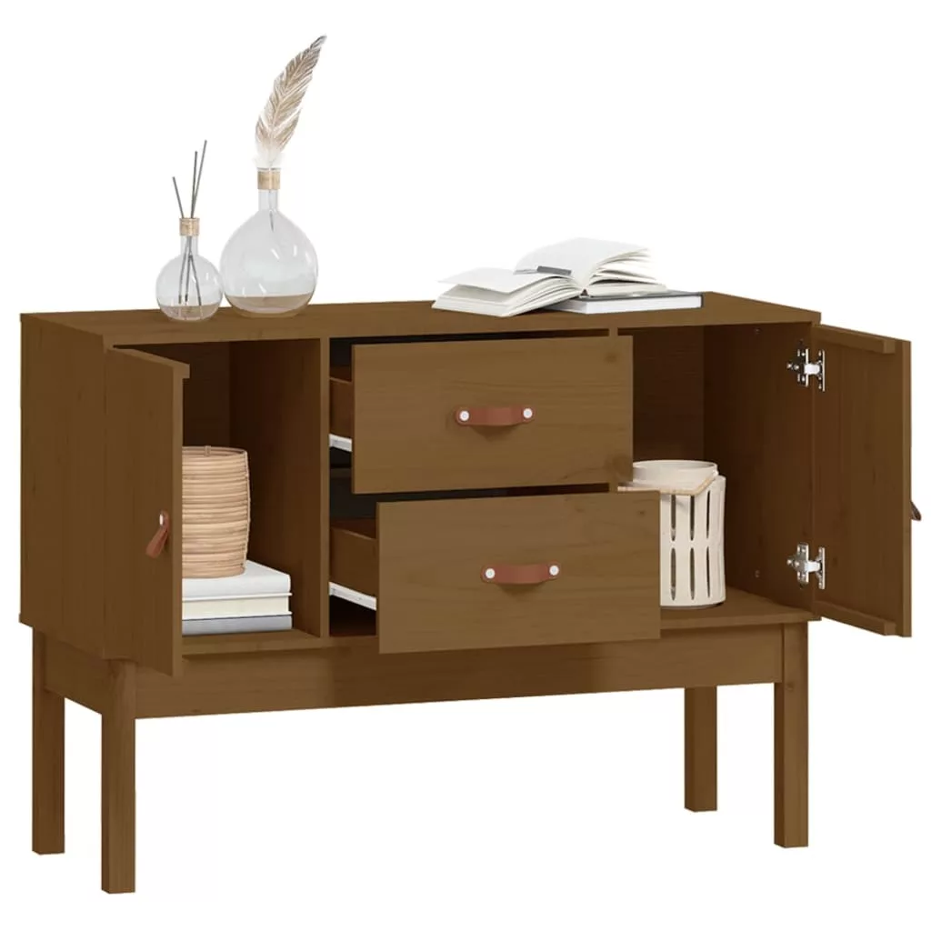 mézbarna tömör fenyőfa tálalószekrény 110 x 40 x 78 cm