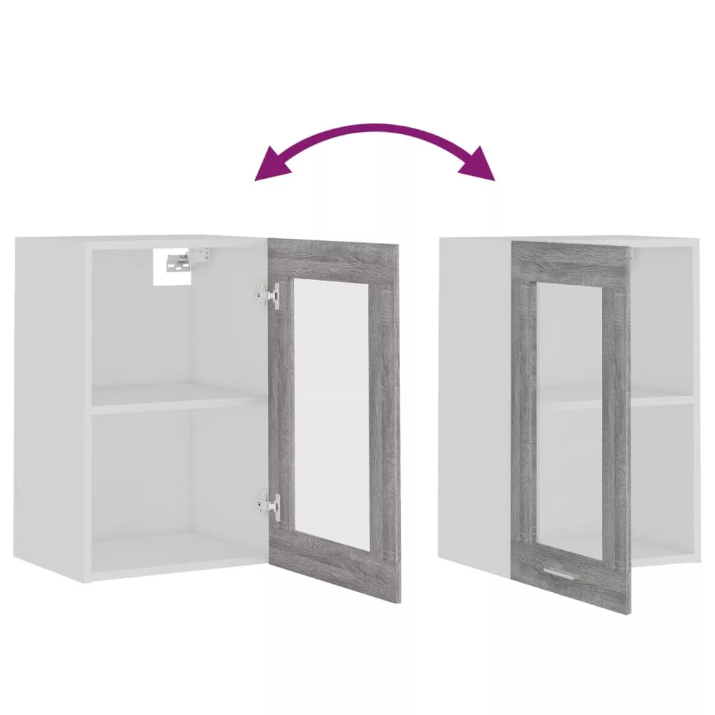 “Lyon” szürke sonoma színű szerelt fa függő üvegszekrény