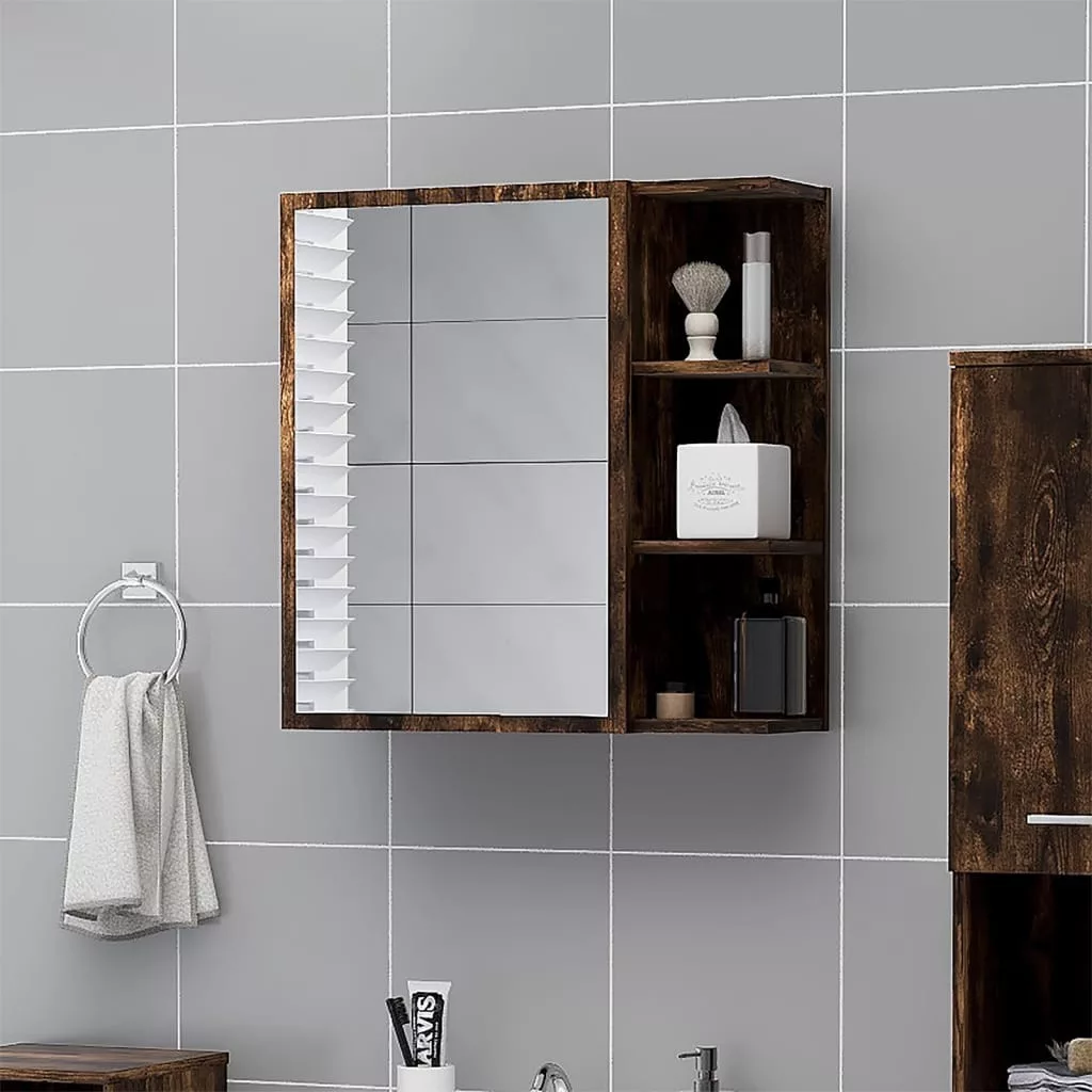 füstös tölgy színű szerelt fa tükrös szekrény 62,5x20,5x64 cm