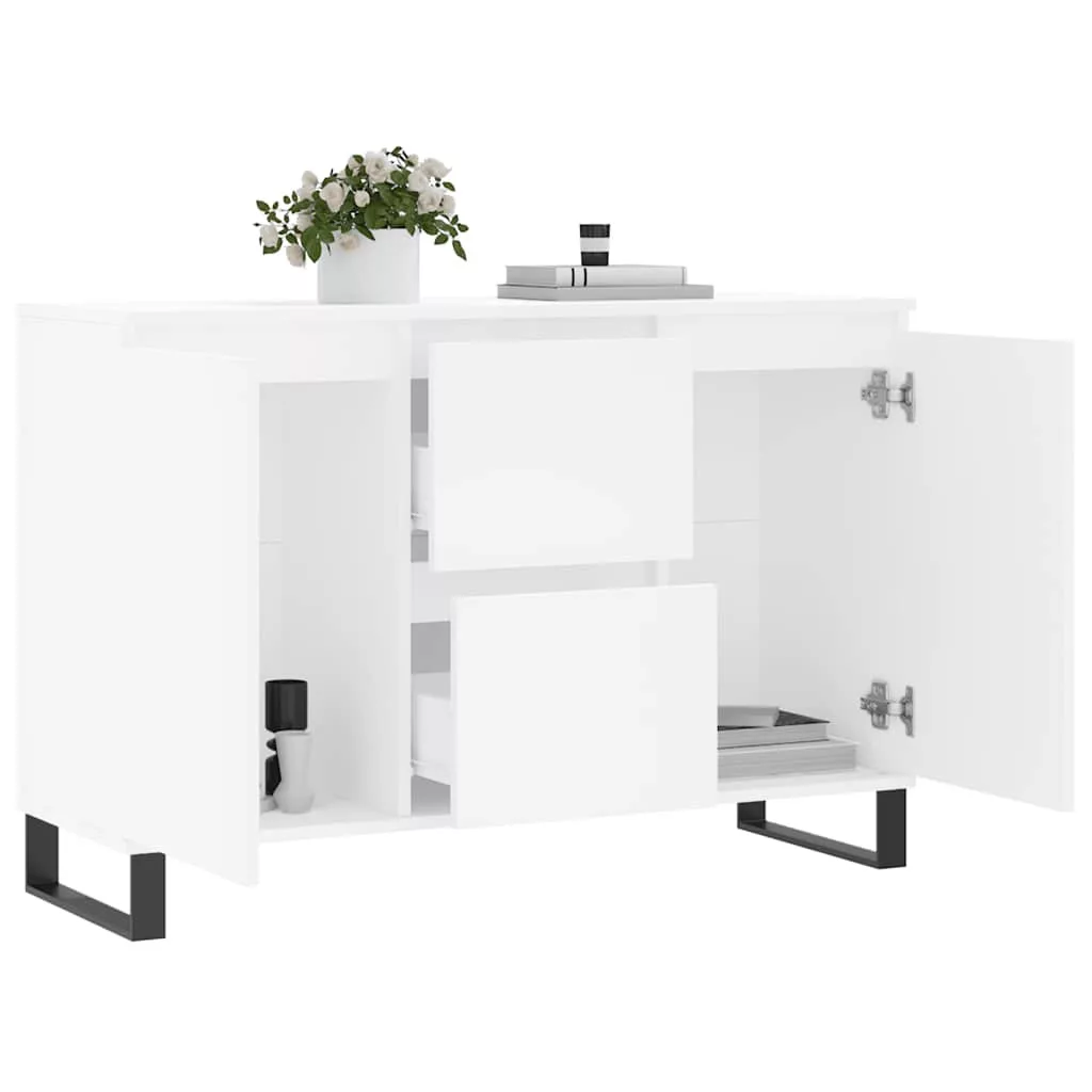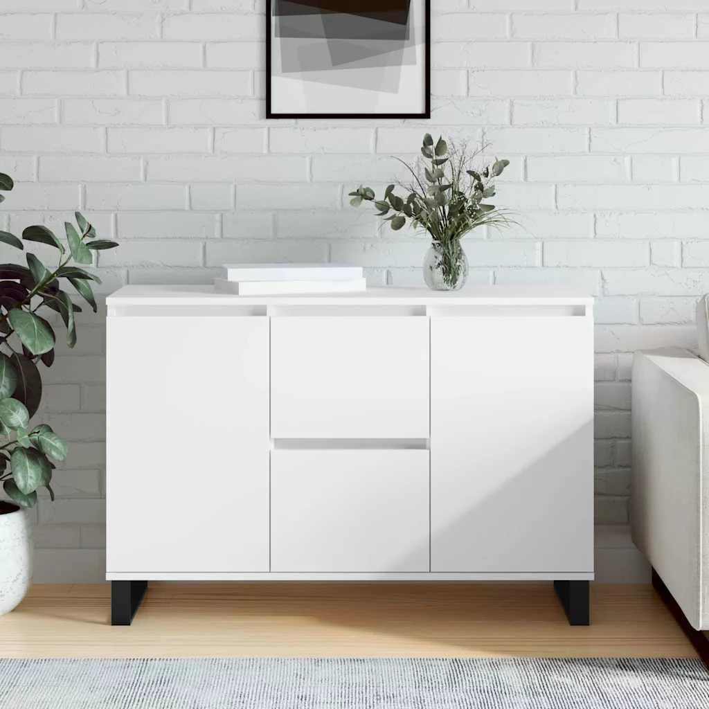 Ez a divatos, időtlen megjelenésű tálalószekrény otthona nagyszerű kiegészítője lesz. Tartós anyag: A szerelt fa kivételes minőségű, sima felületű, szilárd, stabil, és ellenáll a nedvességnek. A szerelt fából készült tárolószekrény nedves ruhával könnyen tisztítható.Bőséges tárolóhely: A szekrény bőséges helyet biztosít alapvető holmijai kézközelben történő rendezett tárolásához.Bemutatófunkció: A tálalószekrény teteje tökéletes dekorációs tárgyak, képkeretek és cserepes növények megjelenítésére.Vaslábak: A kisszekrény vaslábai szilárdságot és stabilitást biztosítanak. Figyelem:A felborulás elkerülése érdekében ezt a terméket a mellékelt fali rögzítőeszközzel kell használni.