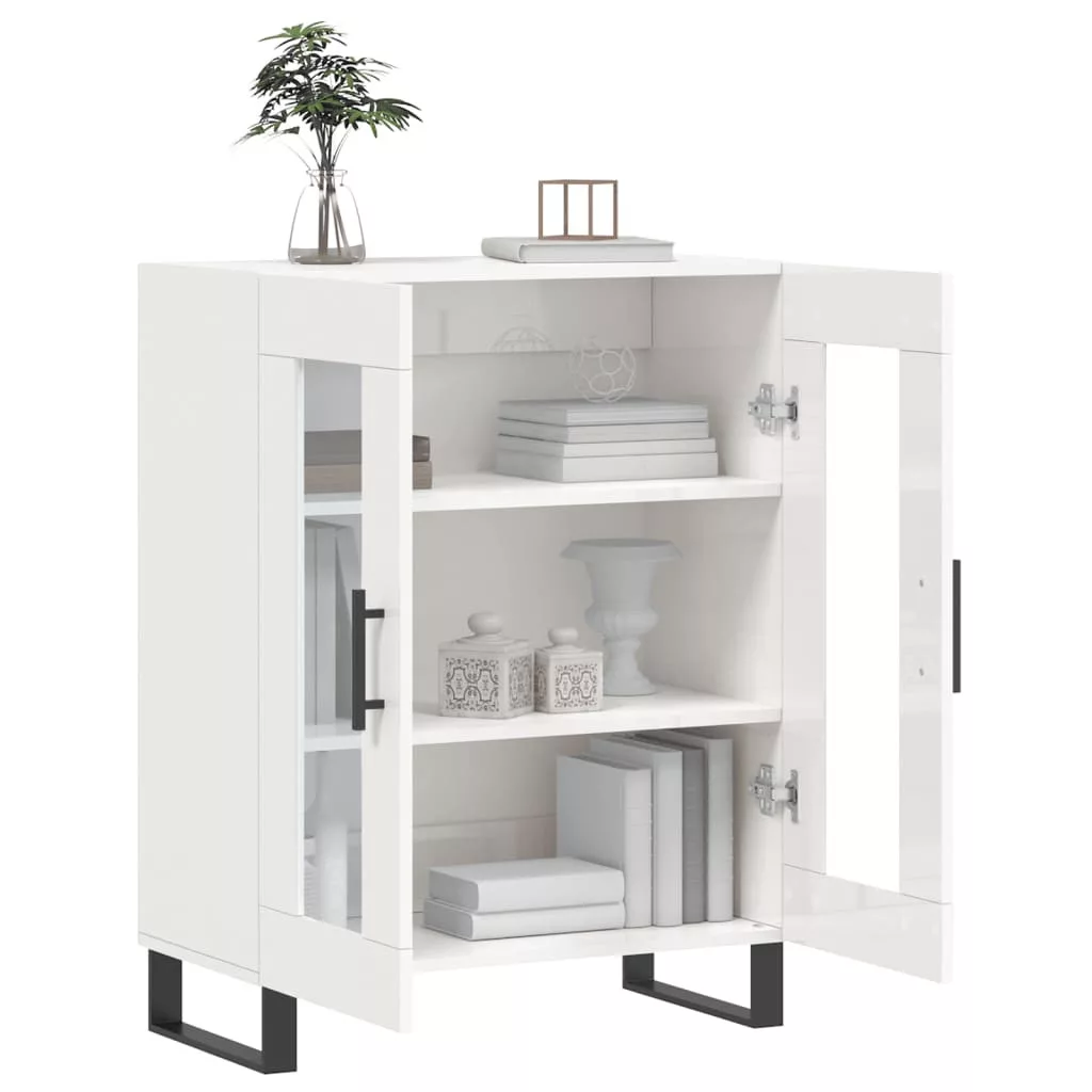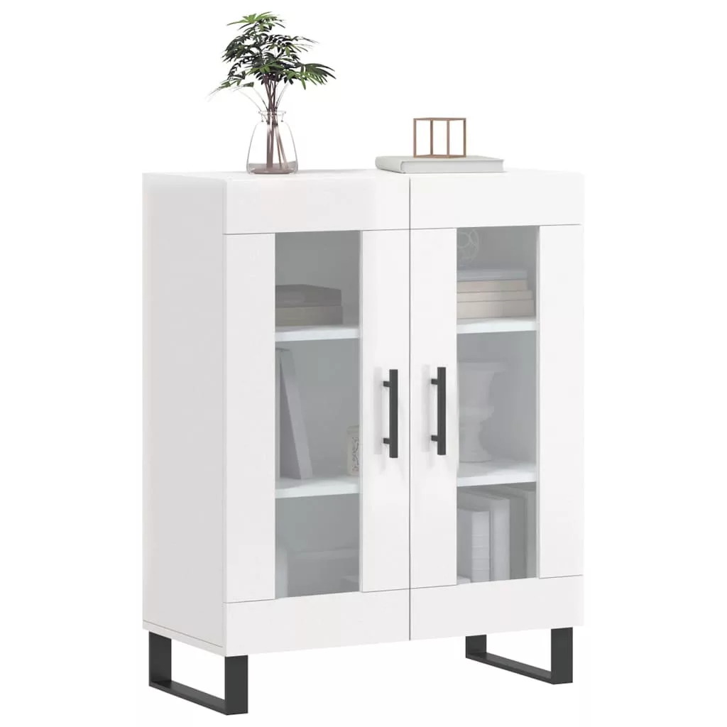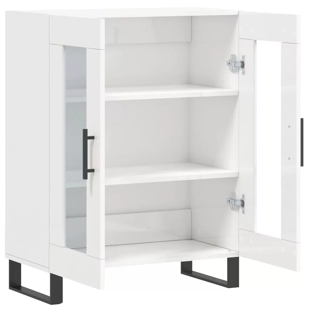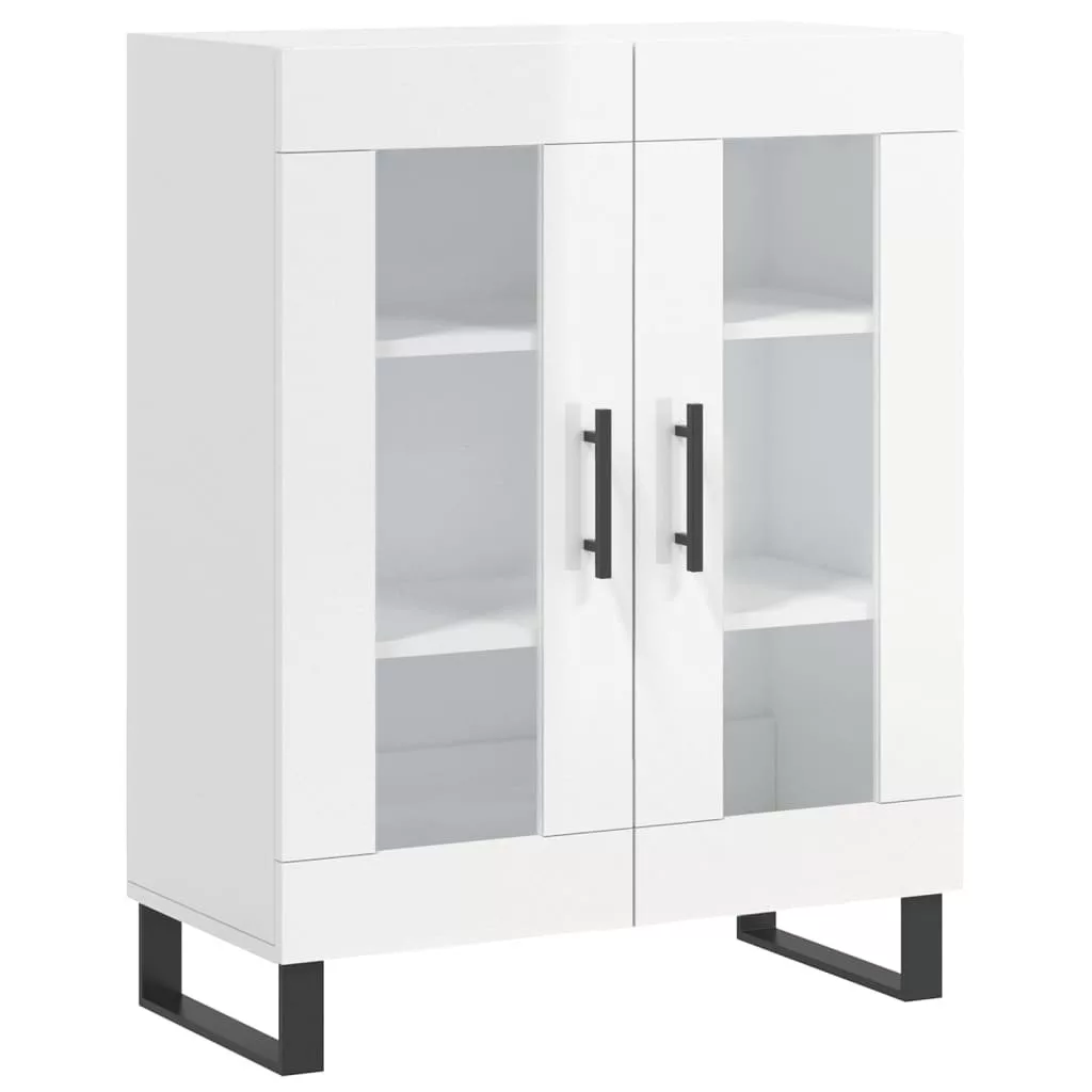 magasfényű fehér szerelt fa tálalószekrény 69,5 x 34 x 90 cm