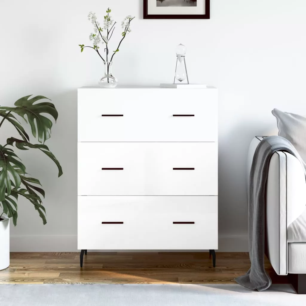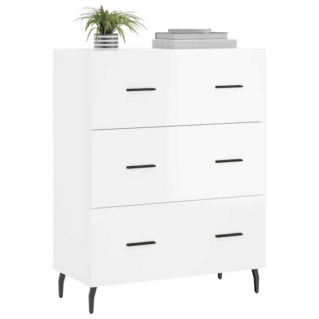 magasfényű fehér szerelt fa tálalószekrény 69,5 x 34 x 90 cm
