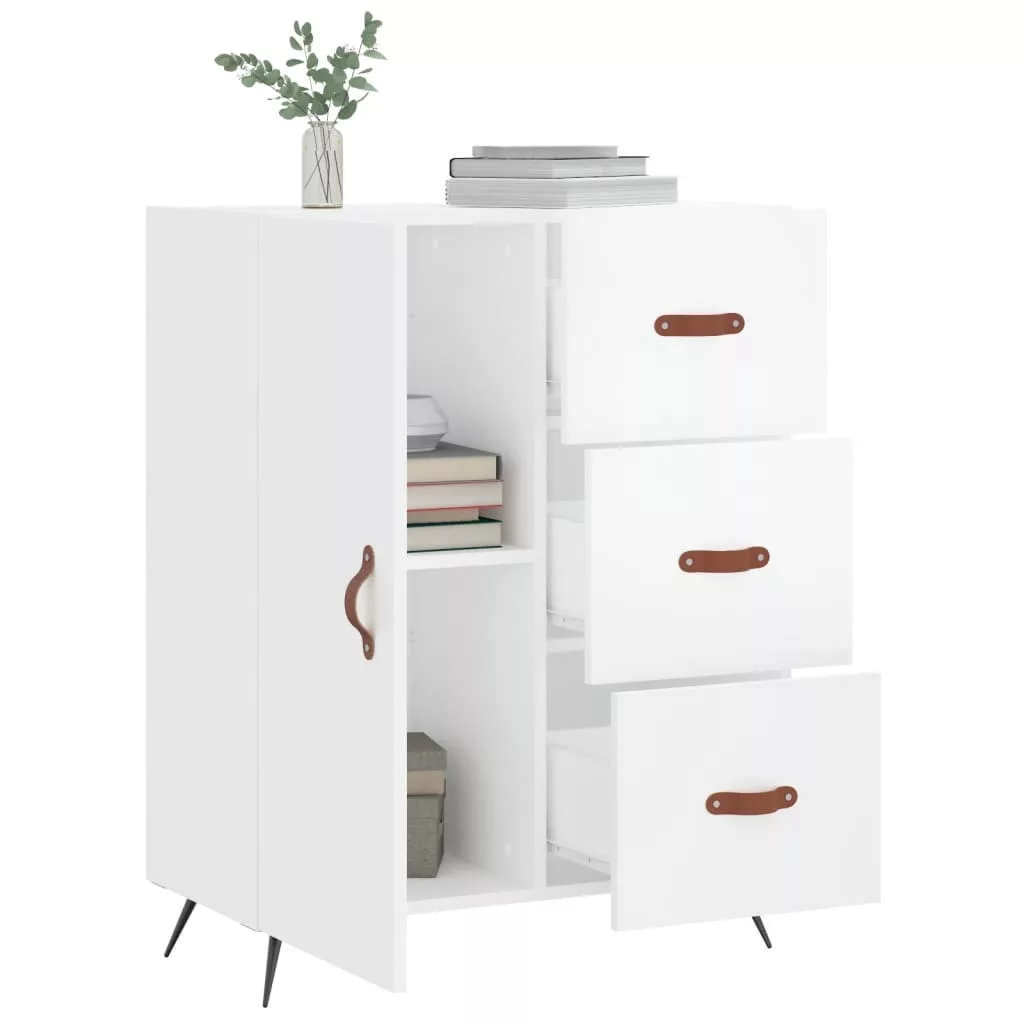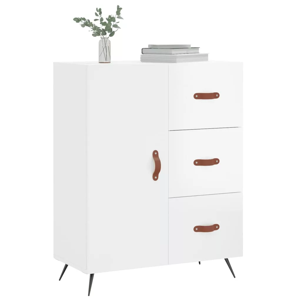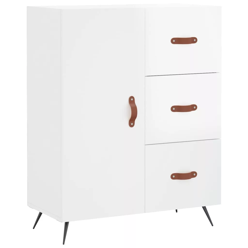 magasfényű fehér szerelt fa tálalószekrény 69,5 x 34 x 90 cm
