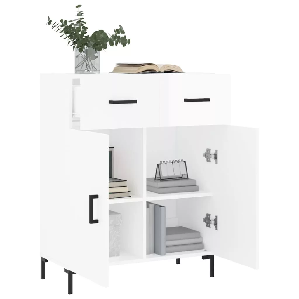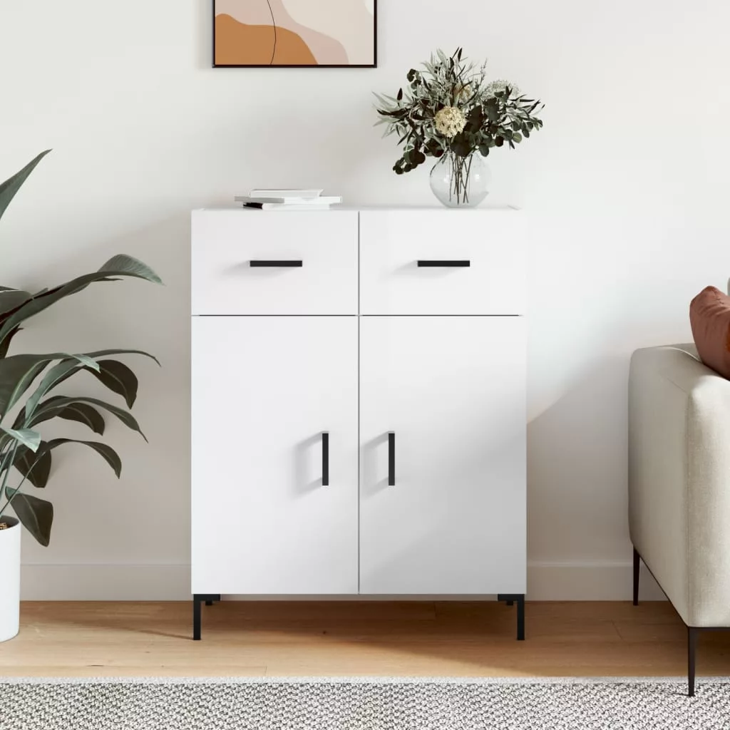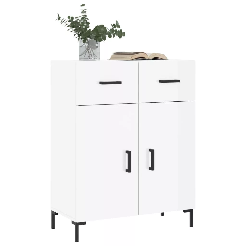 magasfényű fehér szerelt fa tálalószekrény 69,5 x 34 x 90 cm