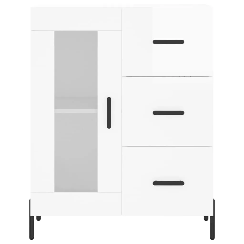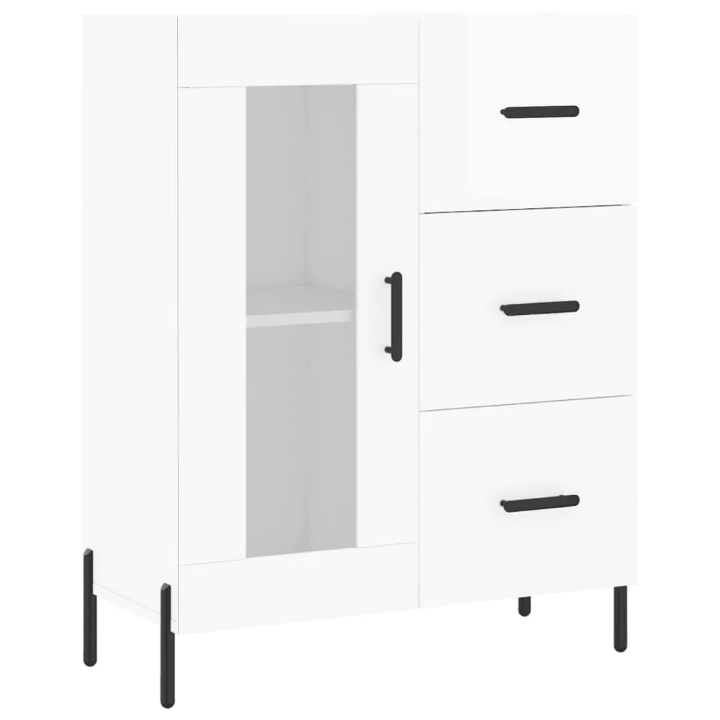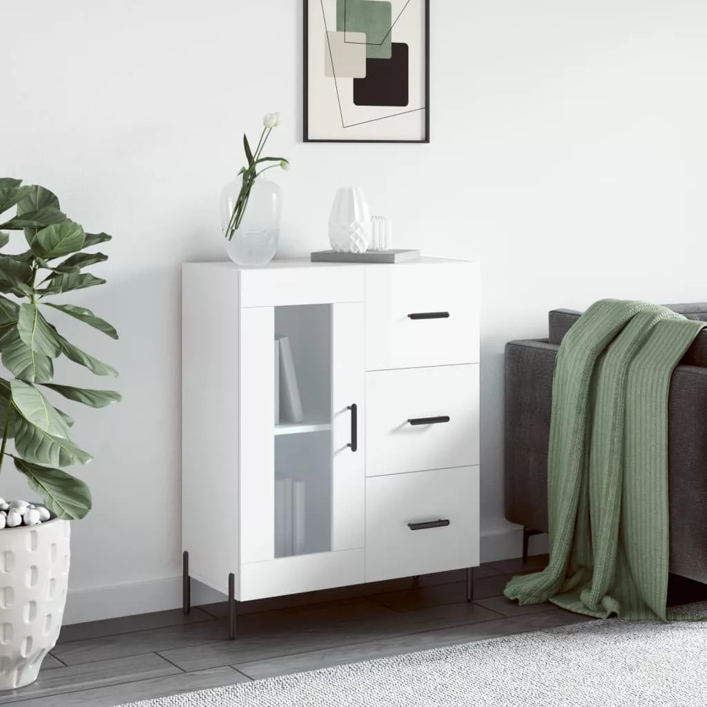 magasfényű fehér szerelt fa tálalószekrény 69,5 x 34 x 90 cm
