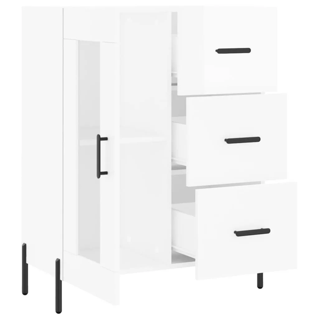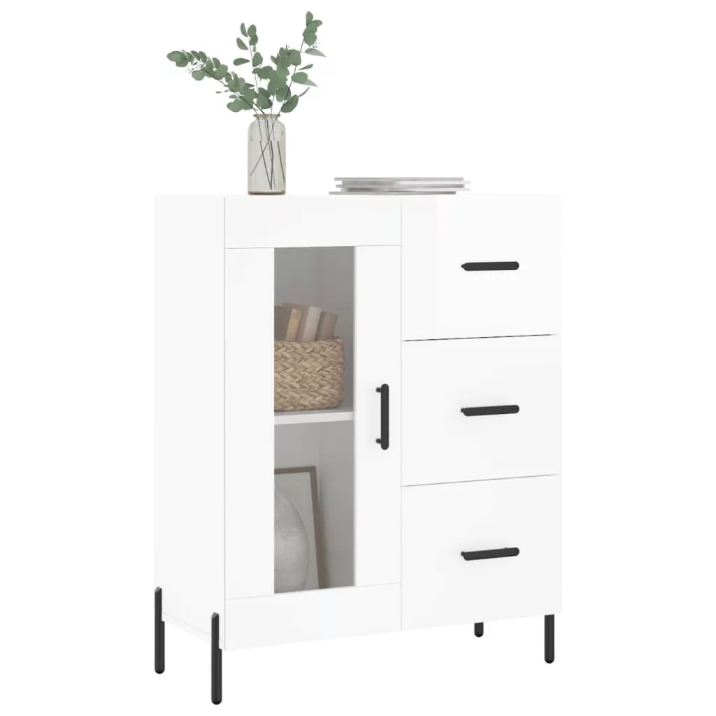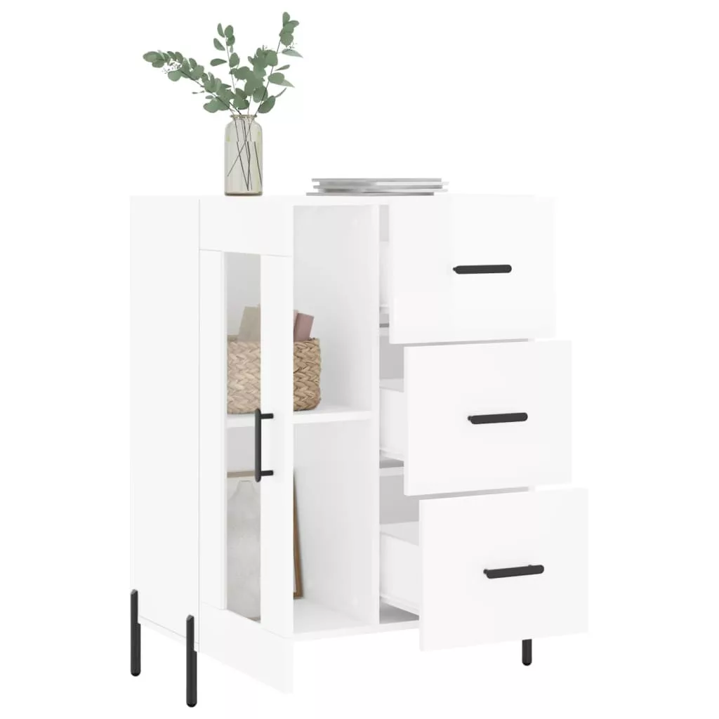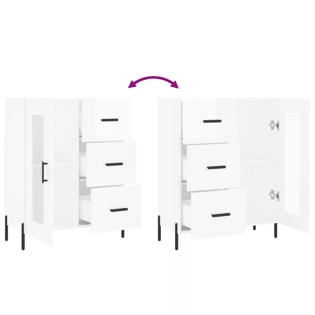 magasfényű fehér szerelt fa tálalószekrény 69,5 x 34 x 90 cm
