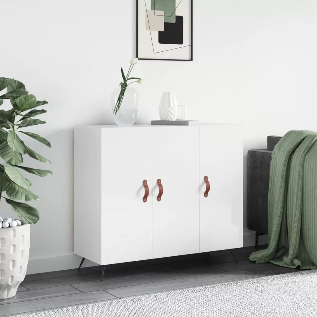 magasfényű fehér szerelt fa tálalószekrény 90 x 34 x 80 cm
