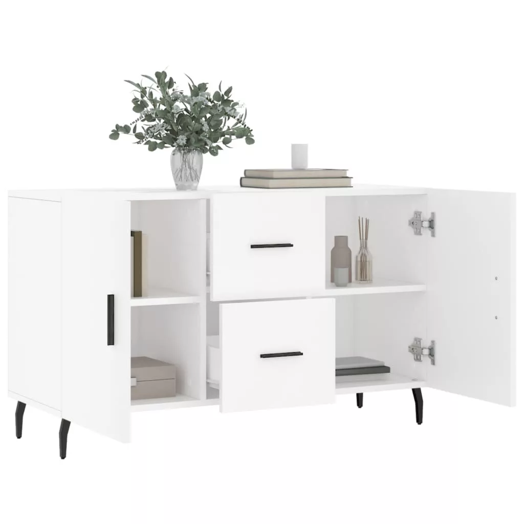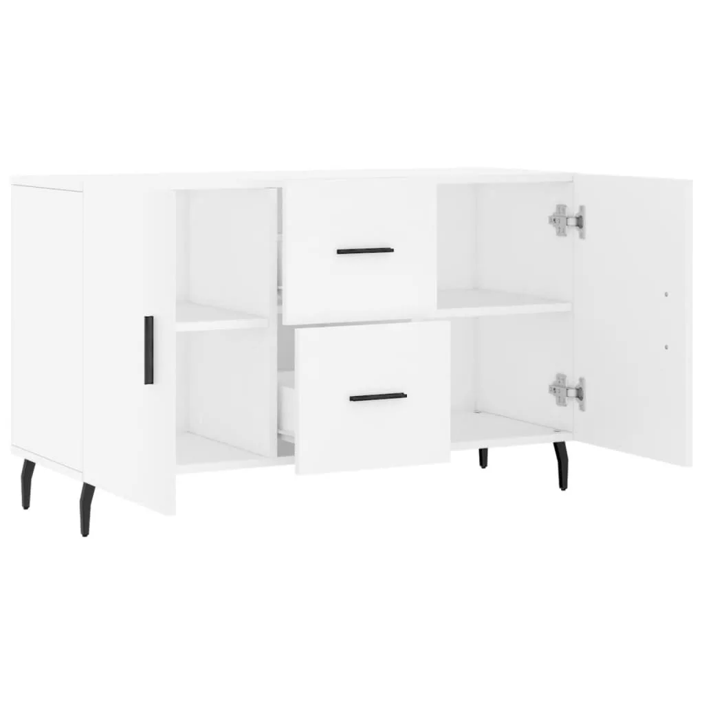 Ez a modern, időtlen megjelenésű tálalószekrény otthona nagyszerű kiegészítője lesz. Tartós anyag: A szerelt fa kivételes minőségű, sima felületű, szilárd, stabil, és ellenáll a nedvességnek. Fémlábak: A fémlábak modern és visszafogott stílust kölcsönöznek otthonának, ráadásul a stabilitásról is gondoskodnak. Bőséges tárolóhely: A tálalószekrény bőséges helyet biztosít alapvető holmijai kézközelben történő rendezett tárolásához.Stabil és masszív asztallap: A konyhaszekrény asztallapja tökéletes dísztárgyak, képkeretek és cserepes növények elhelyezésére. Praktikus ajtók: Tartsa pormentesen legfontosabb dolgait az ajtók mögé rejtve. Ezenkívül az ajtókon és a fiókokon lévő fogantyúk megkönnyítik a tárolószekrény kinyitását. Figyelem:A felborulás elkerülése érdekében ezt a terméket a mellékelt fali rögzítőeszközzel kell használni.