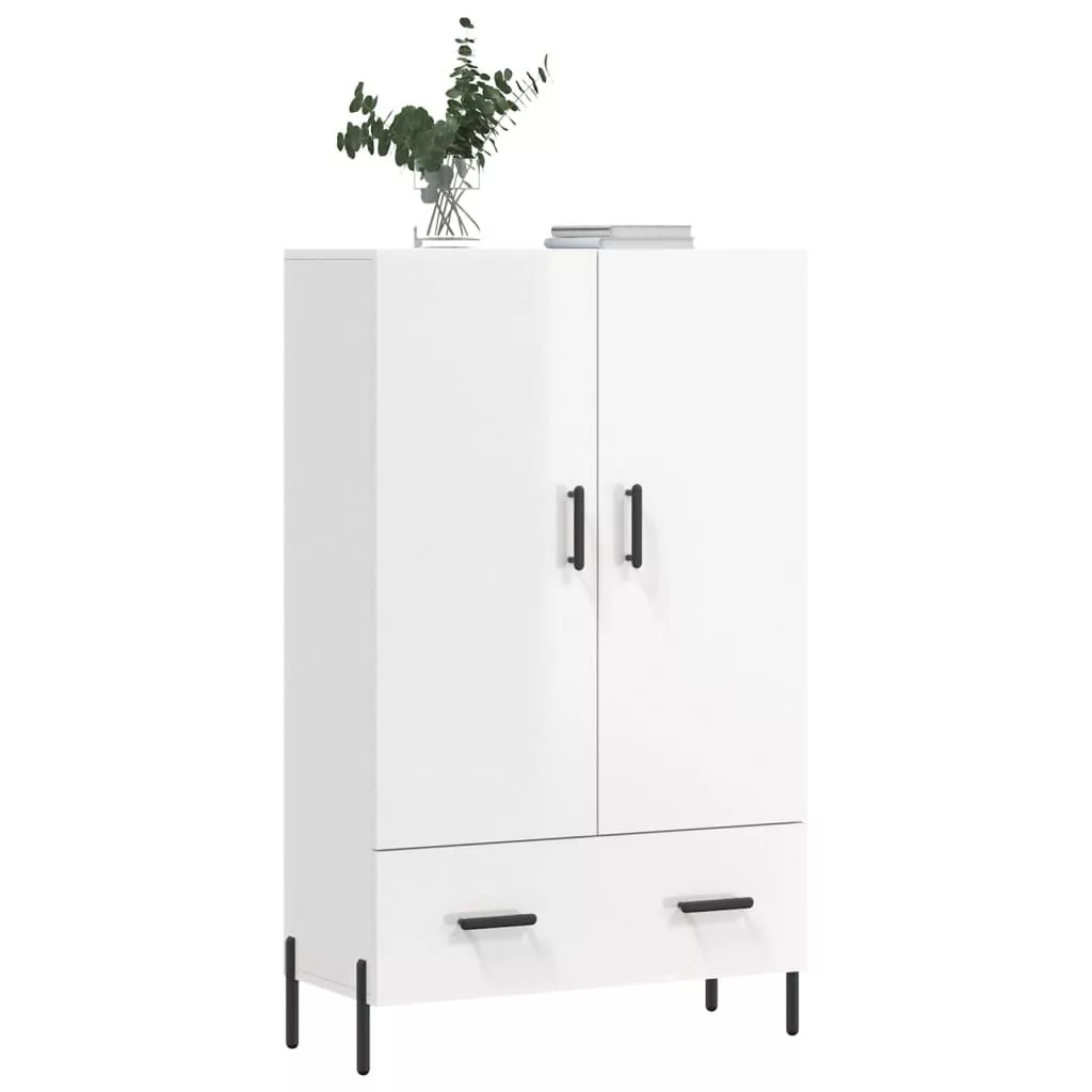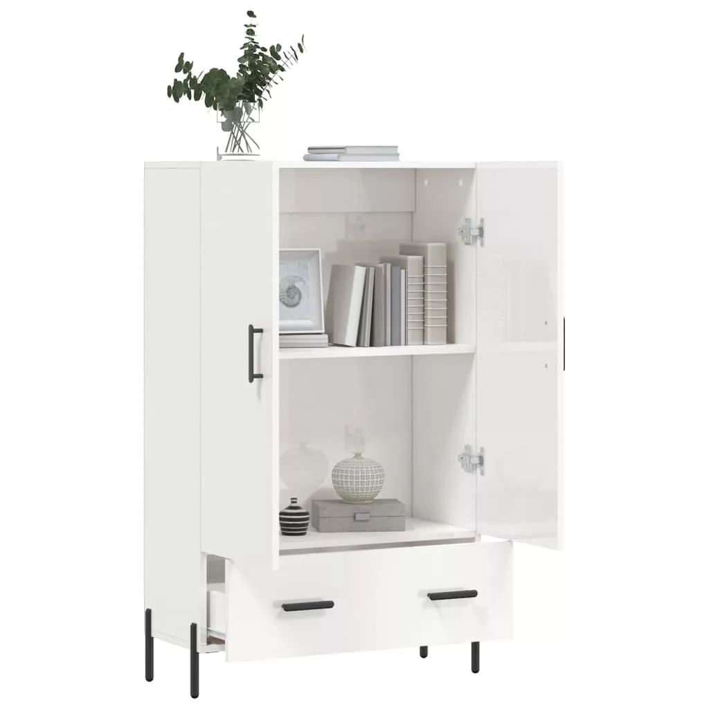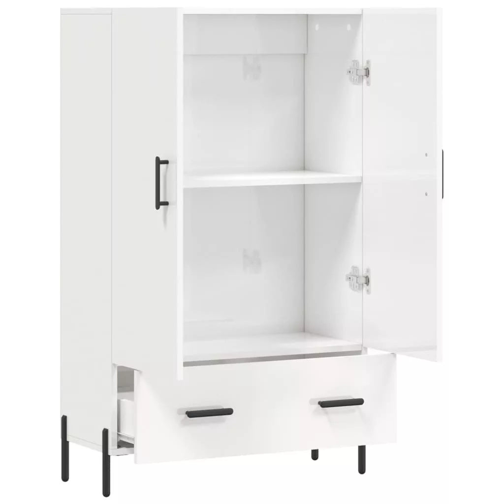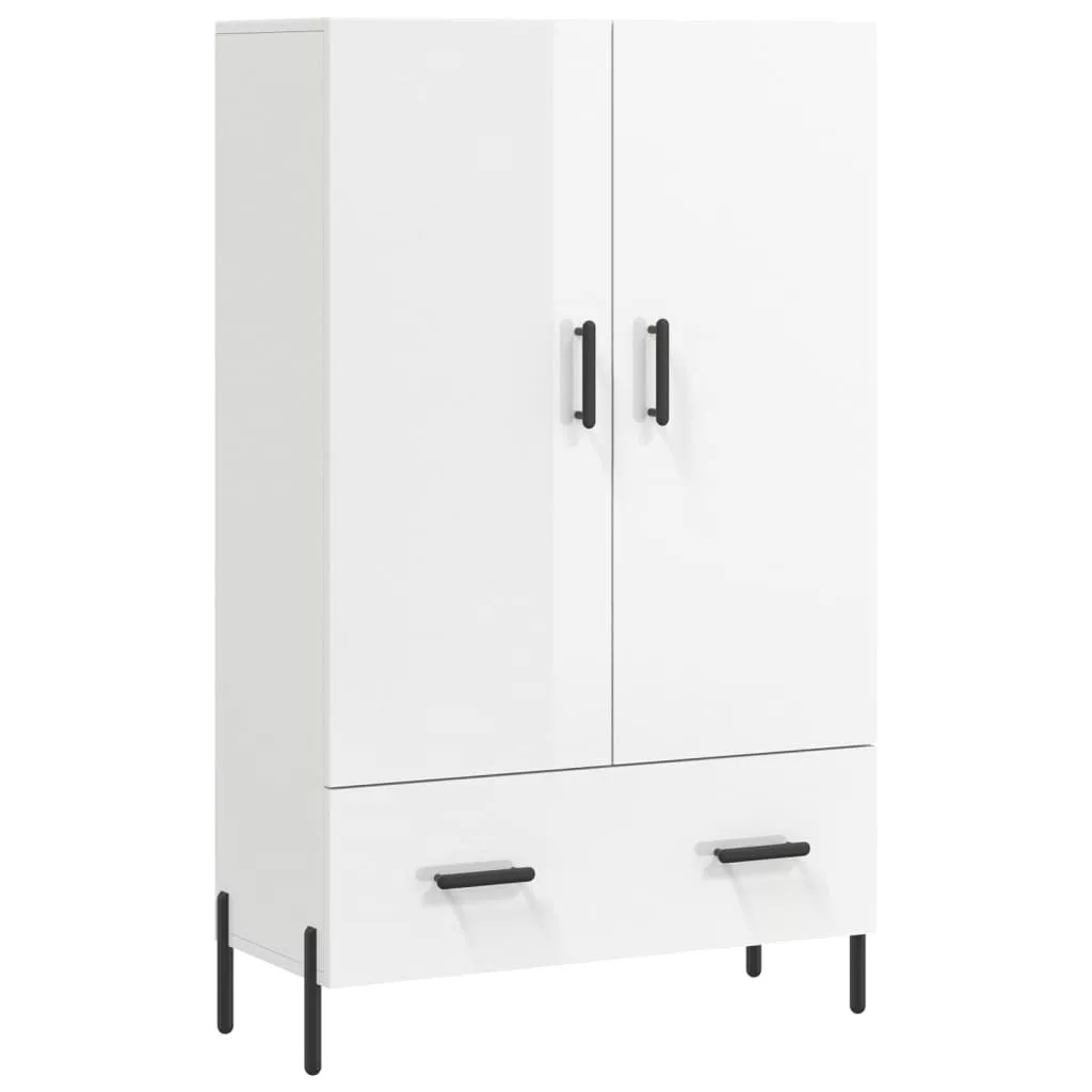 magasfényű fehér szerelt fa magasszekrény 69,5 x 31 x 115 cm
