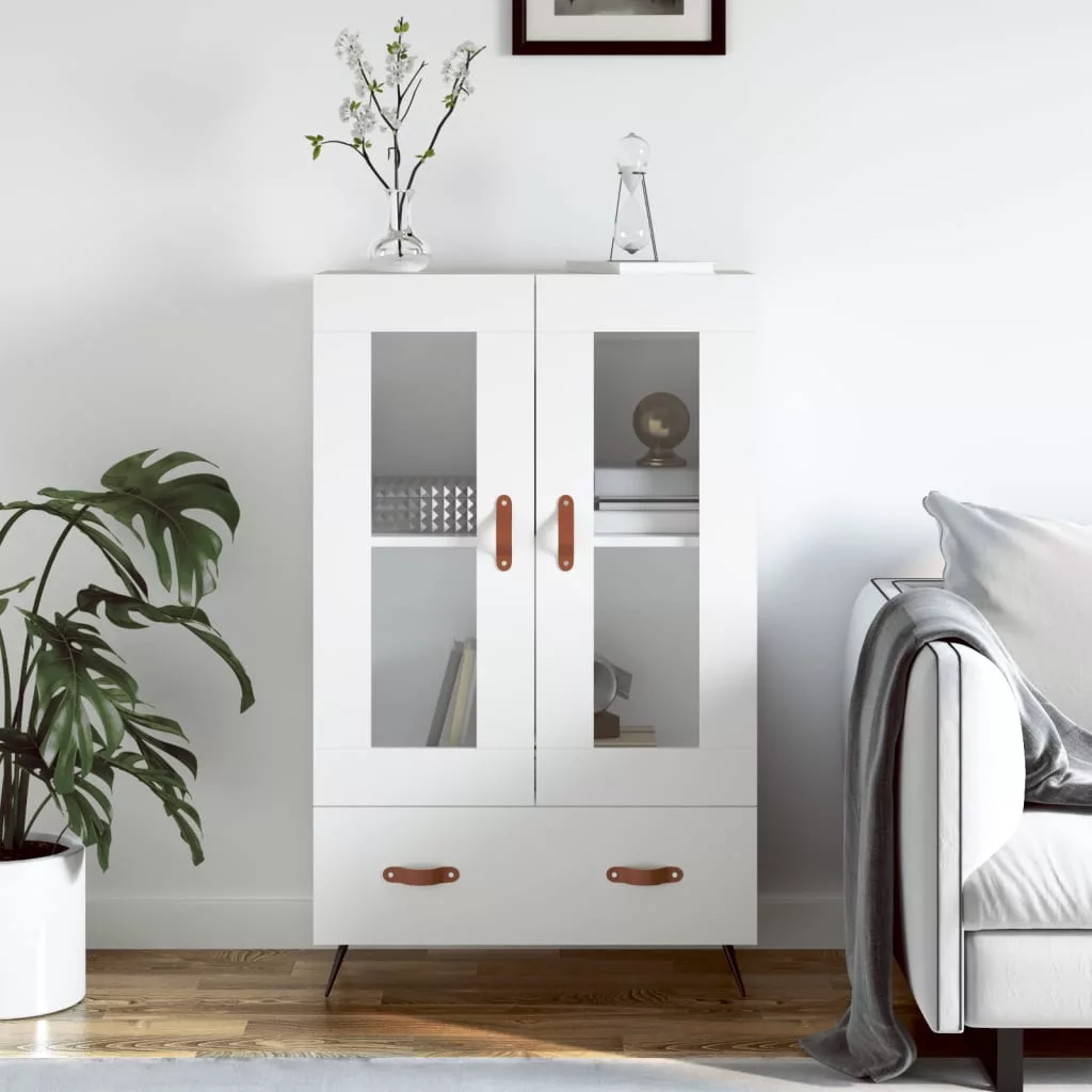 Stílusos magasszekrényt keres? Ez a magasszekrény modern bájt kölcsönöz belső terének! Tartós anyag: A szerelt fa kivételes minőségű, sima felületű, szilárd, stabil, és ellenáll a nedvességnek. Fémlábak: A fémlábak modern és visszafogott stílust kölcsönöznek otthonának, ráadásul a stabilitásról is gondoskodnak. Bőséges tárolóhely: A tálalószekrény bőséges helyet biztosít alapvető holmijai kézközelben történő rendezett tárolásához. Stabil és robusztus felső rész: A tárolószekrény teteje tökéletes dísztárgyak, képkeretek és cserepes növények elhelyezésére. Praktikus kialakítás: Az üvegajtó mögött láthatók a dolgai, ugyanakkor pedig védve vannak a portól. Ezenkívül a fogantyúk megkönnyítik a kisszekrény kinyitását. Figyelem:A felborulás elkerülése érdekében ezt a terméket a mellékelt fali rögzítőeszközzel kell használni.