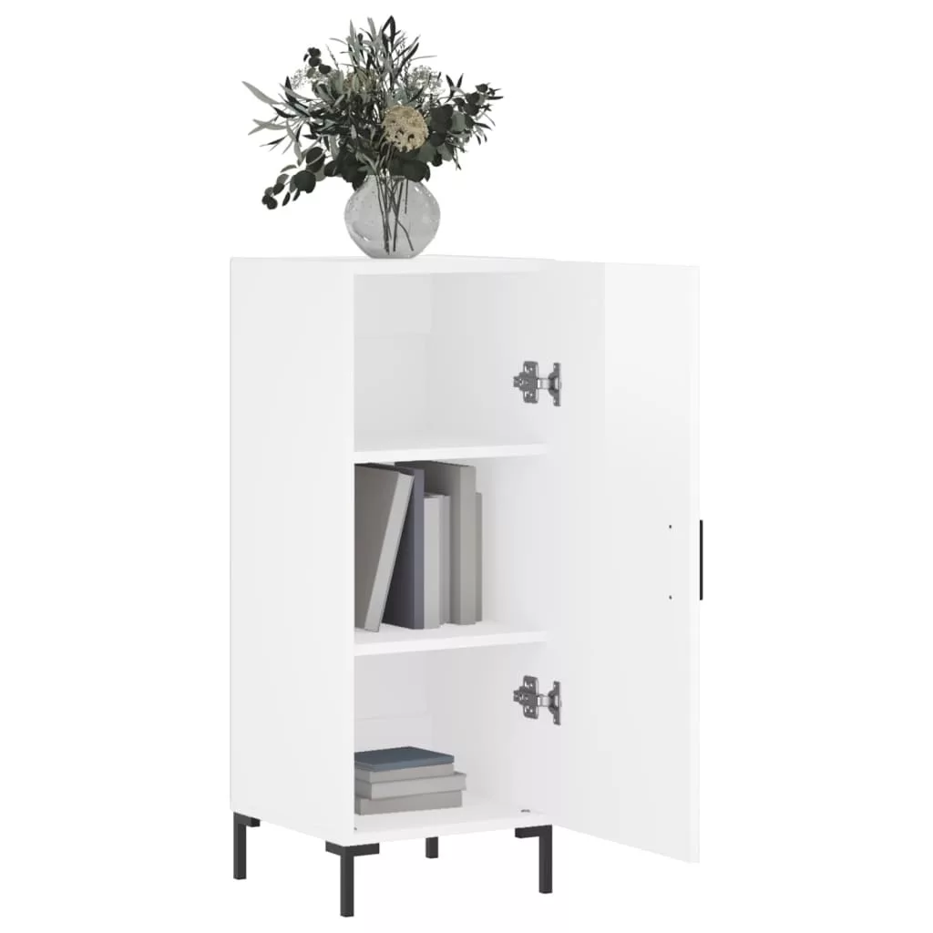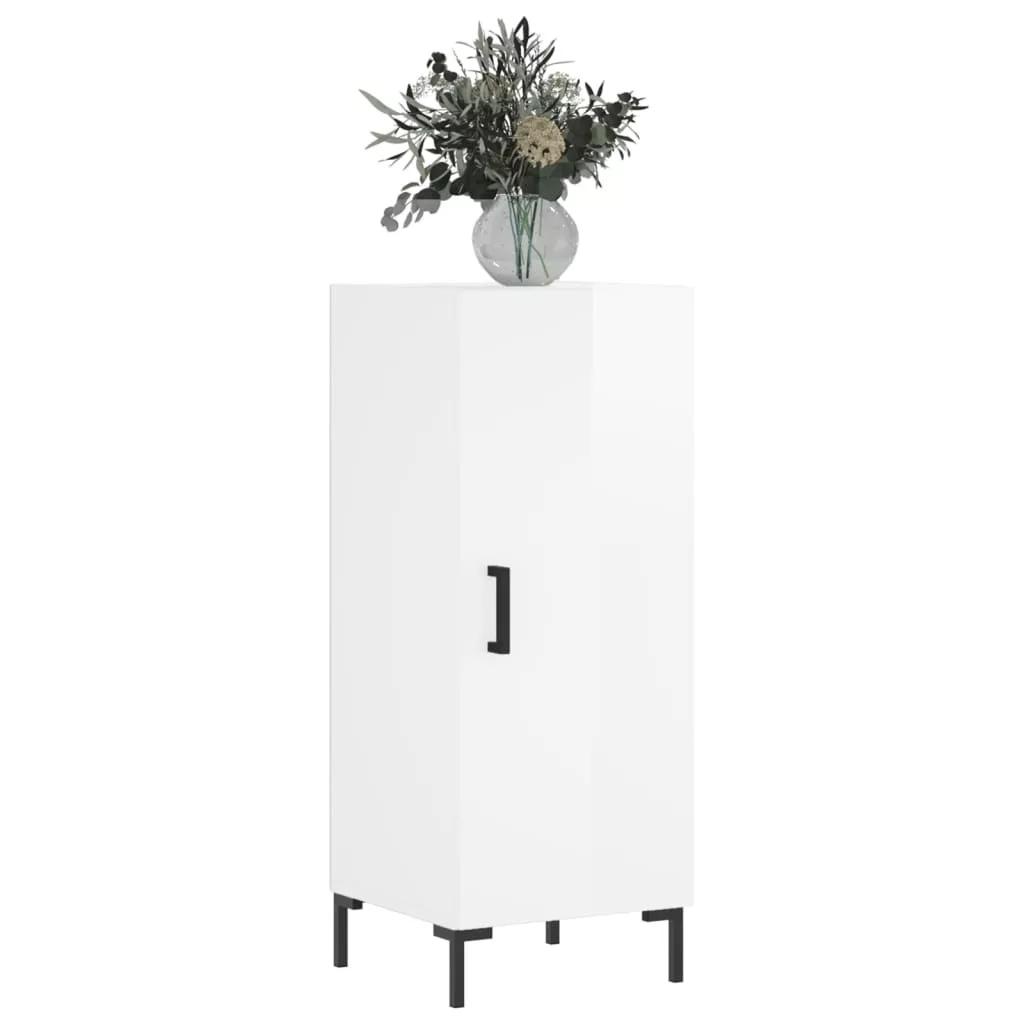 magasfényű fehér szerelt fa tálalószekrény 34,5 x 34 x 90 cm