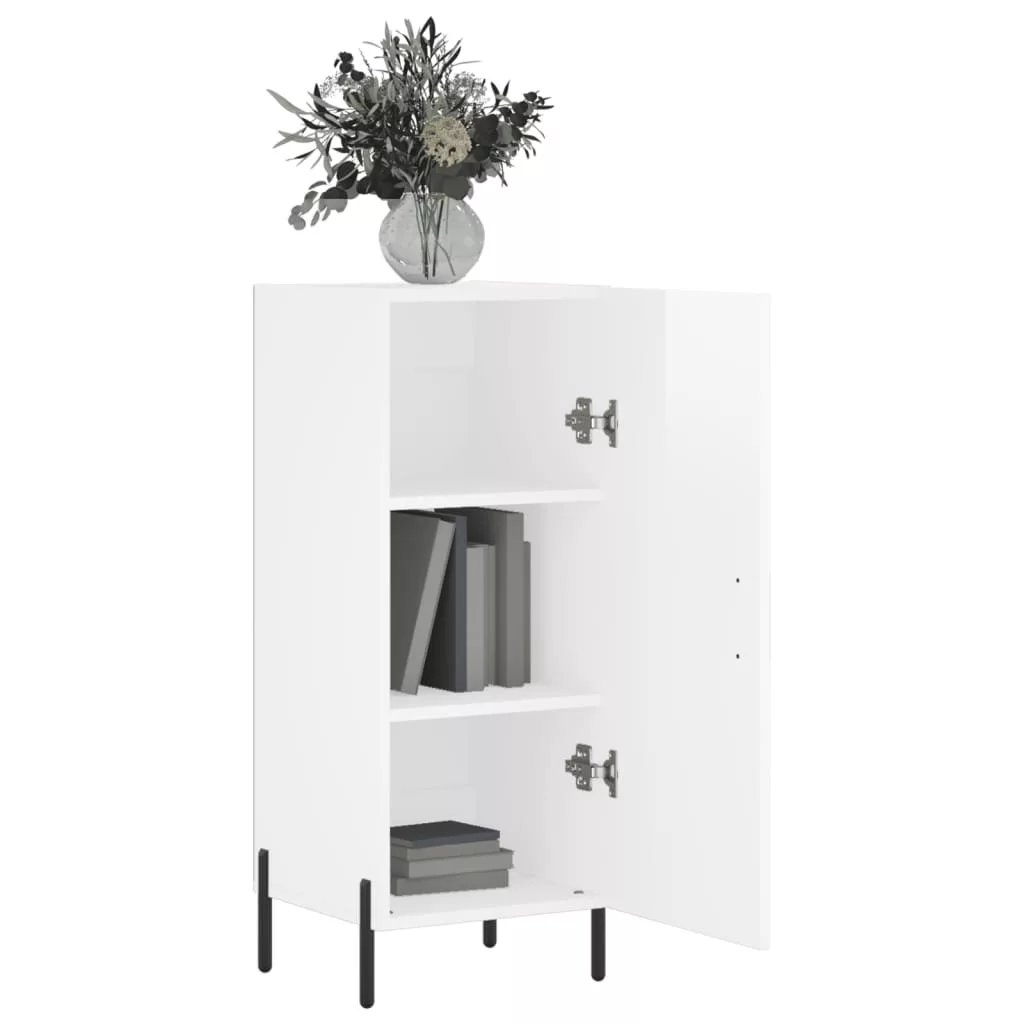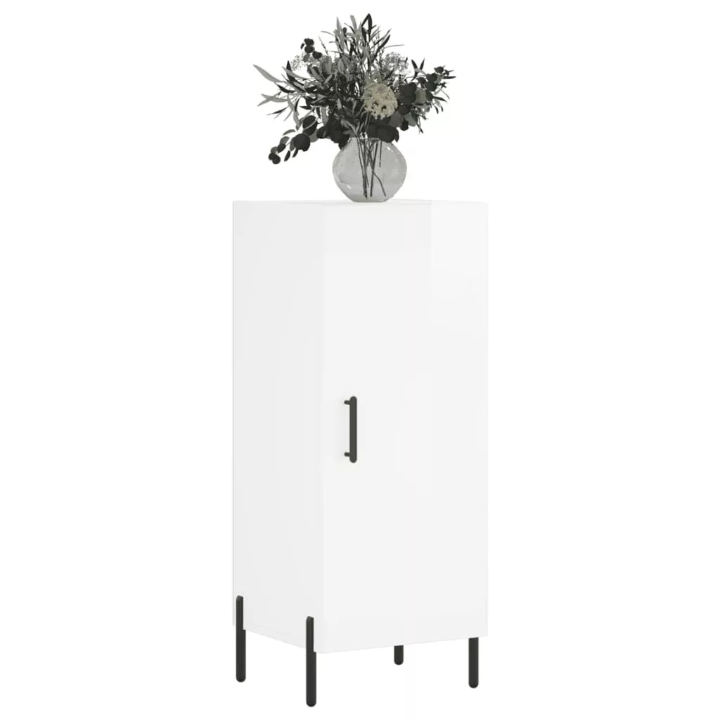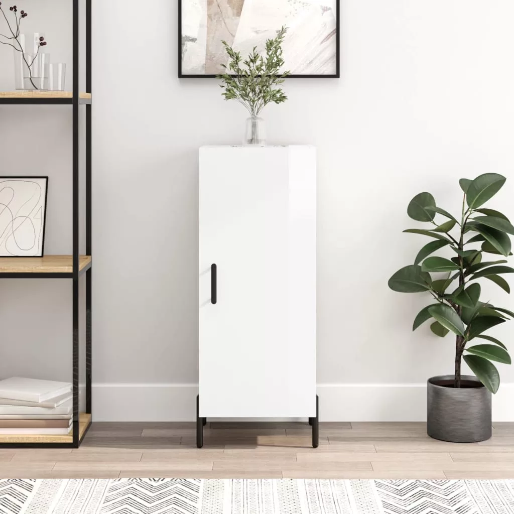 magasfényű fehér szerelt fa tálalószekrény 34,5 x 34 x 90 cm