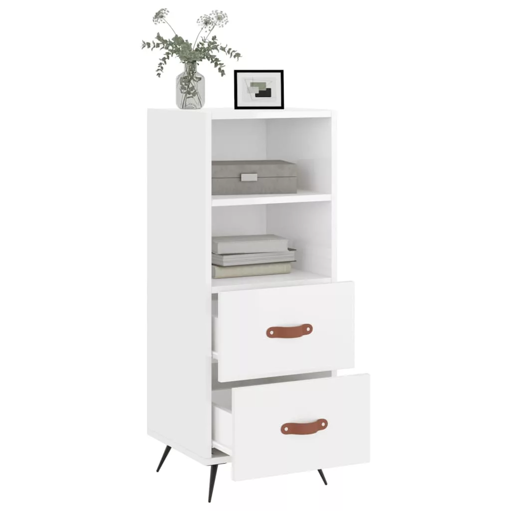 magasfényű fehér szerelt fa tálalószekrény 34,5 x 34 x 90 cm
