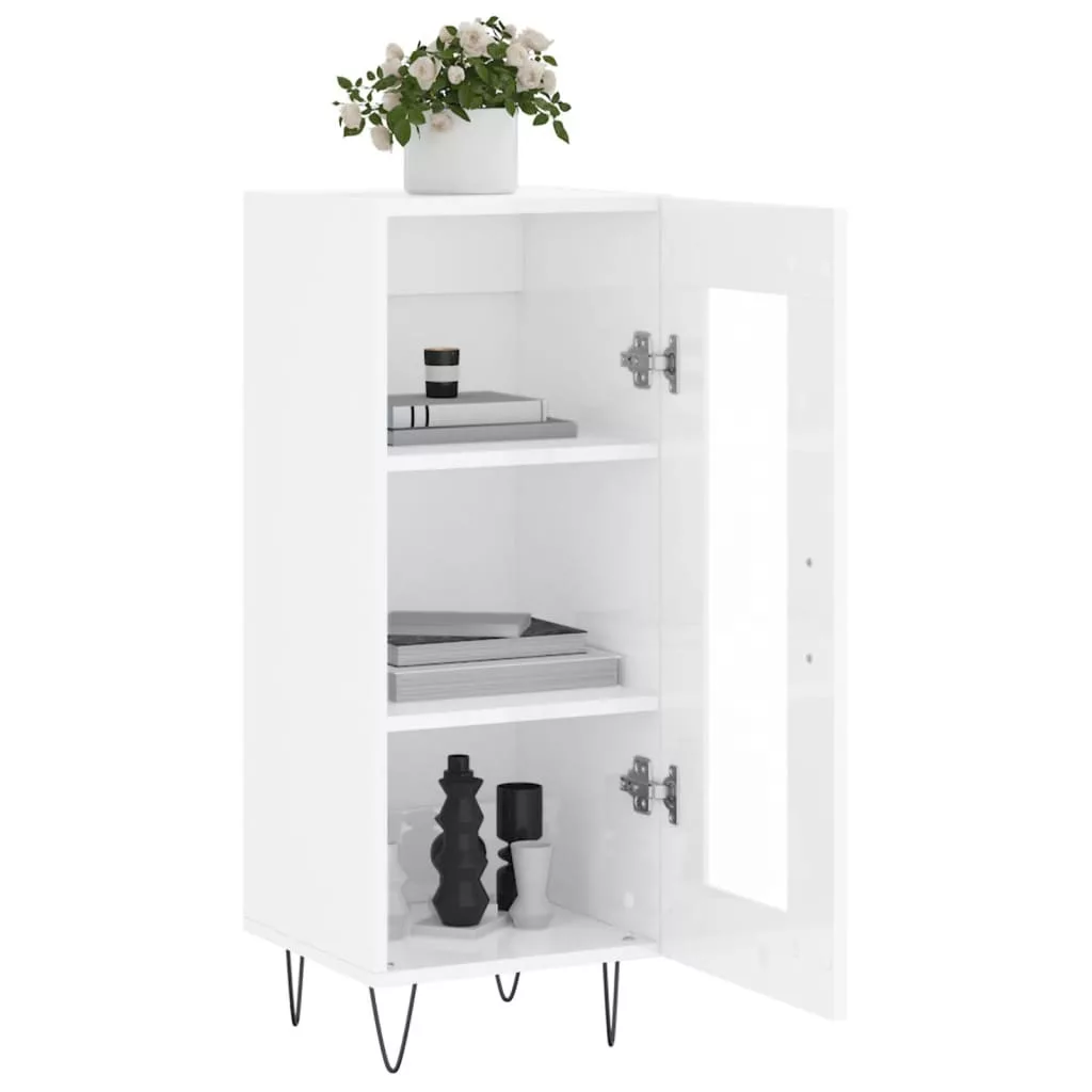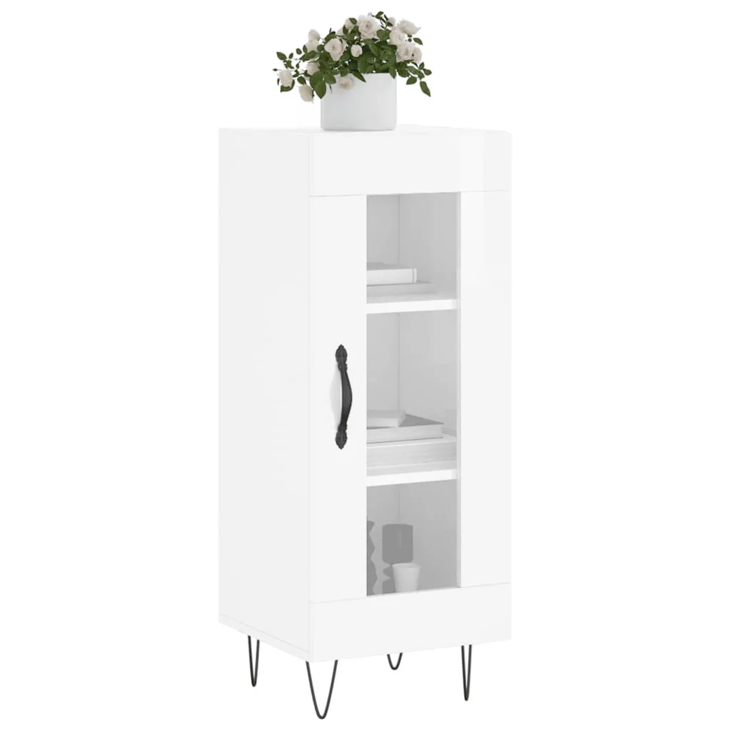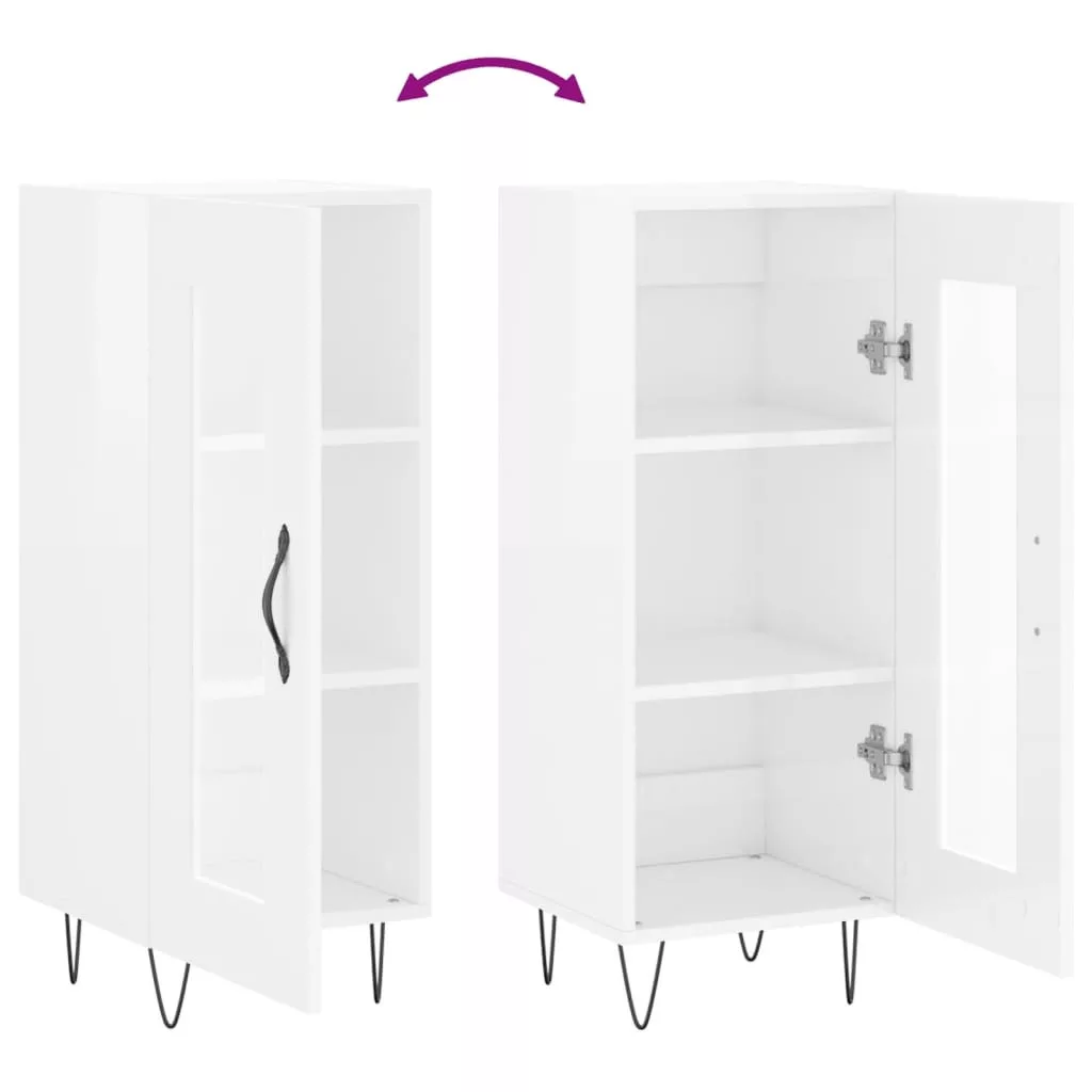 magasfényű fehér szerelt fa tálalószekrény 34,5 x 34 x 90 cm