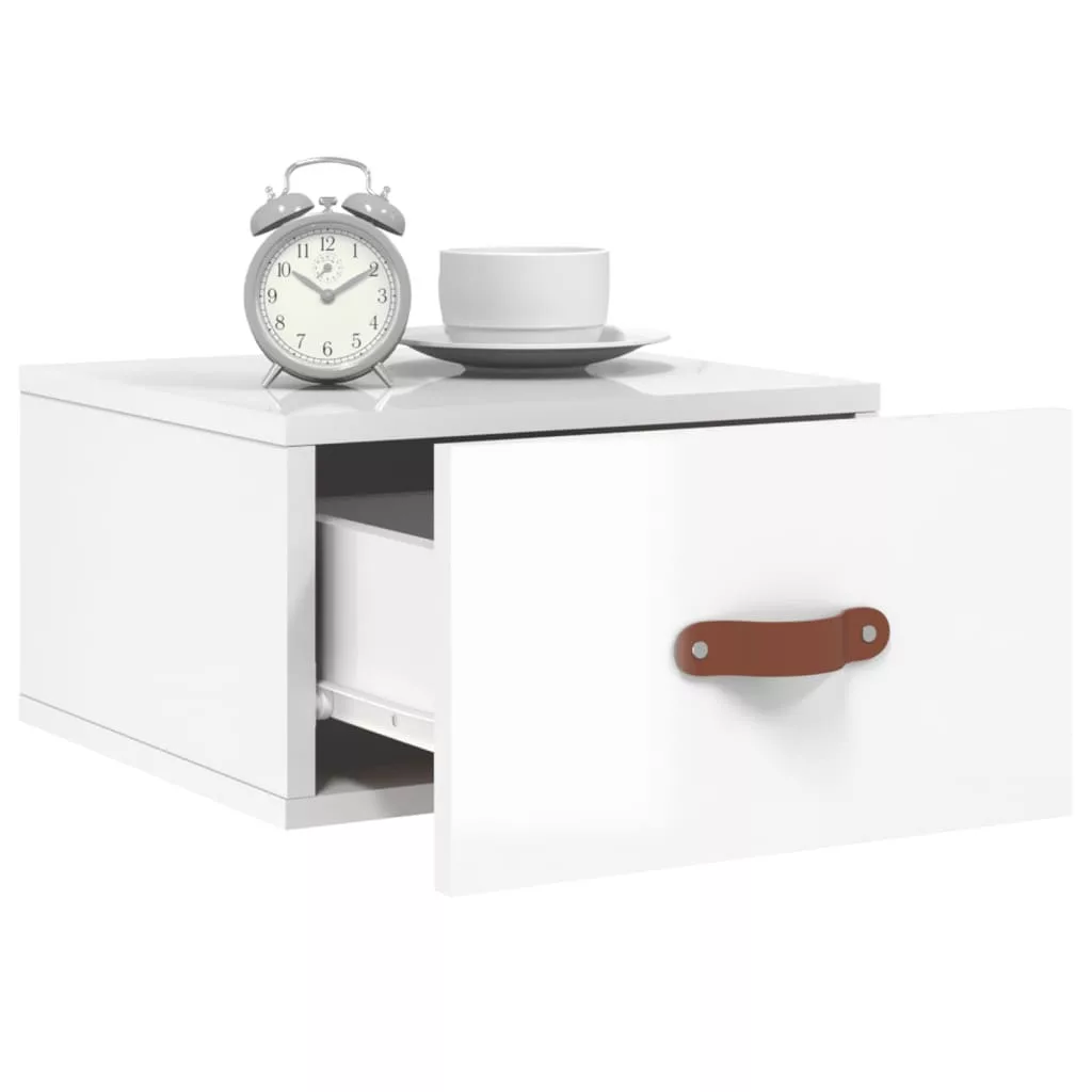 2 db magasfényű fehér fali éjjeliszekrény 35x35x20 cm