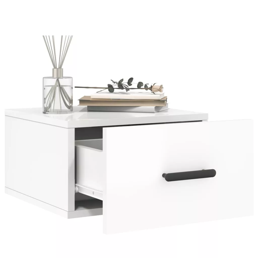 2 db magasfényű fehér fali éjjeliszekrény 35x35x20 cm