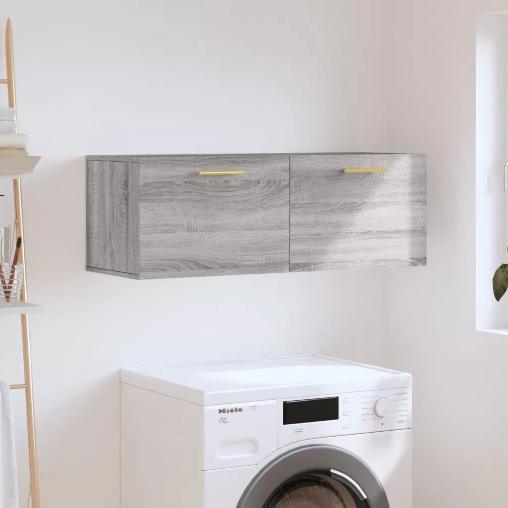 szürke sonoma színű szerelt fa faliszekrény 100 x 36,5 x 35 cm