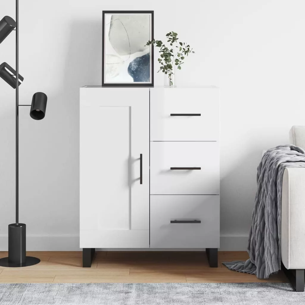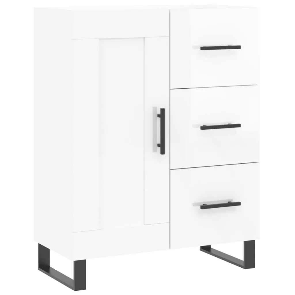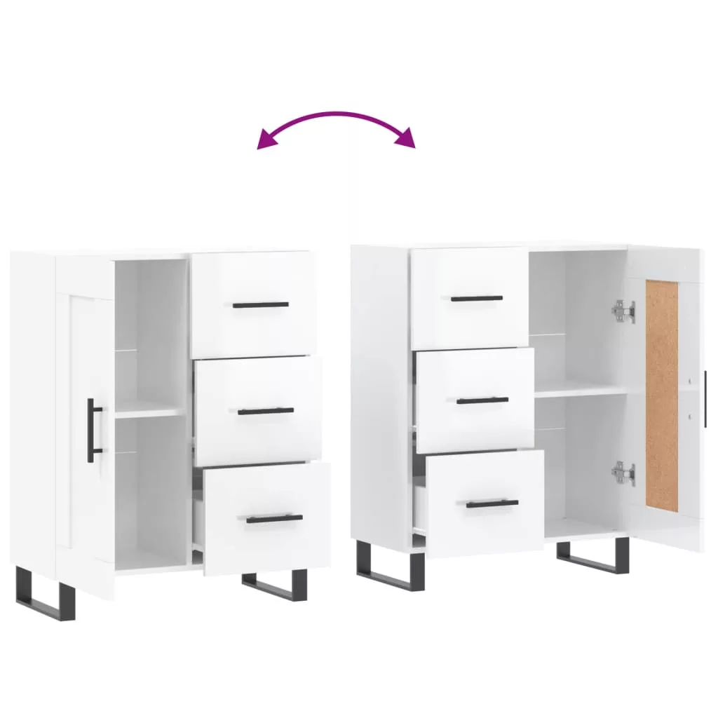 magasfényű fehér szerelt fa tálalószekrény 69,5 x 34 x 90 cm