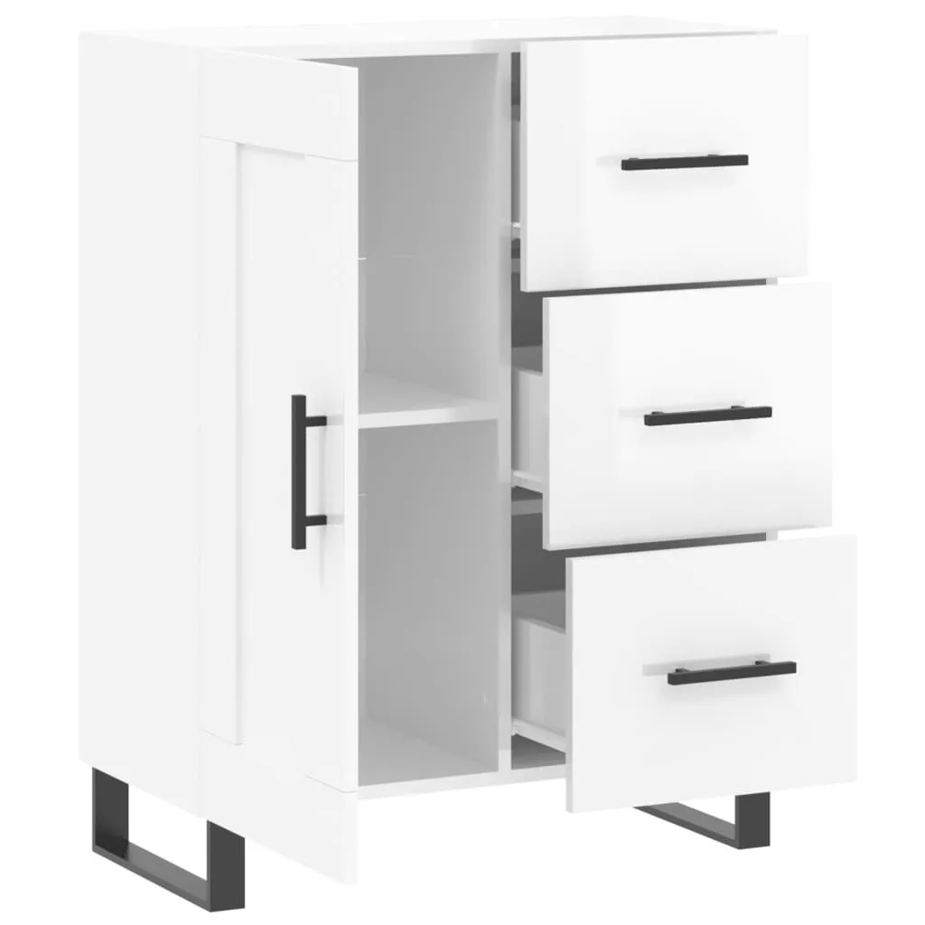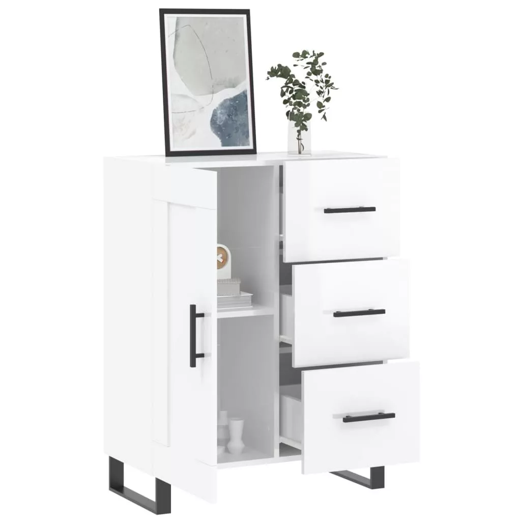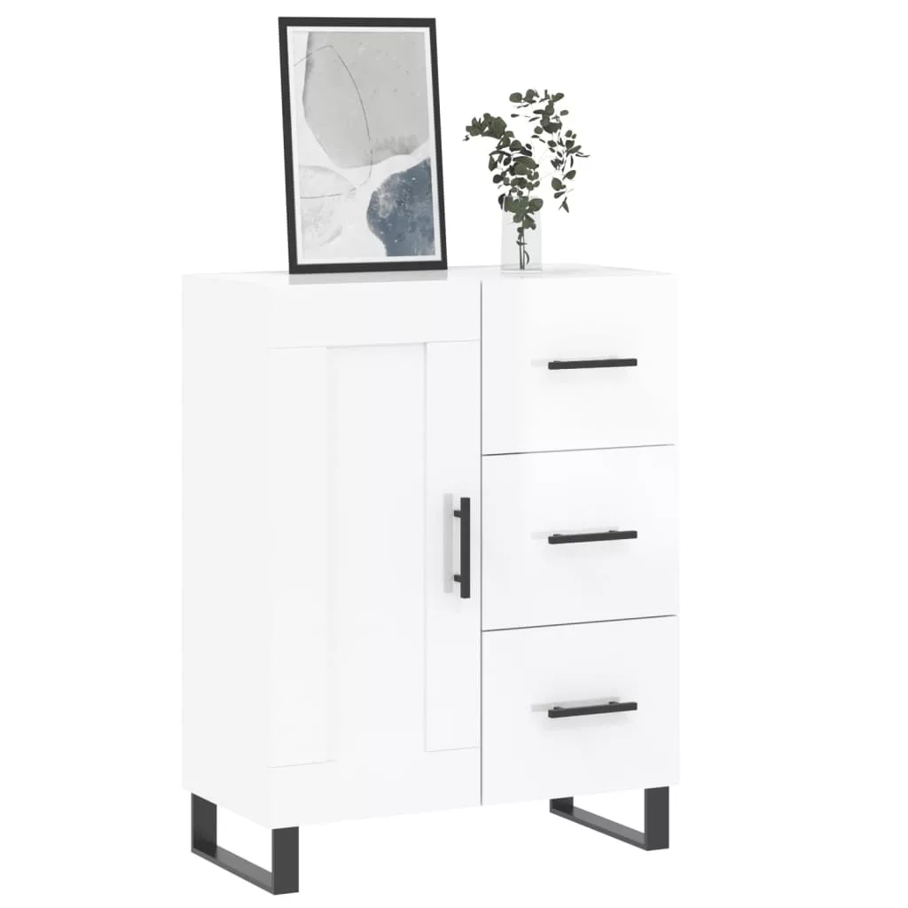 magasfényű fehér szerelt fa tálalószekrény 69,5 x 34 x 90 cm