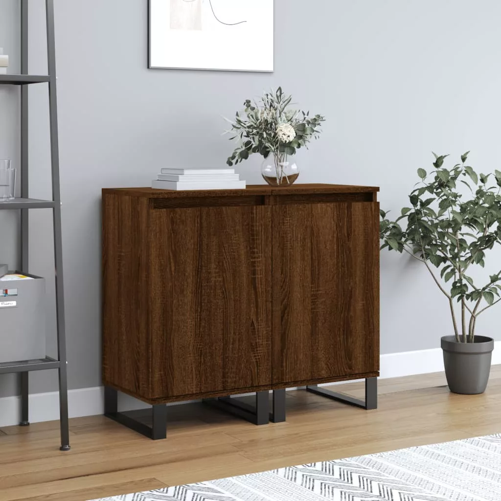 2 db barna tölgy színű szerelt fa tálalószekrény 40x35x70cm