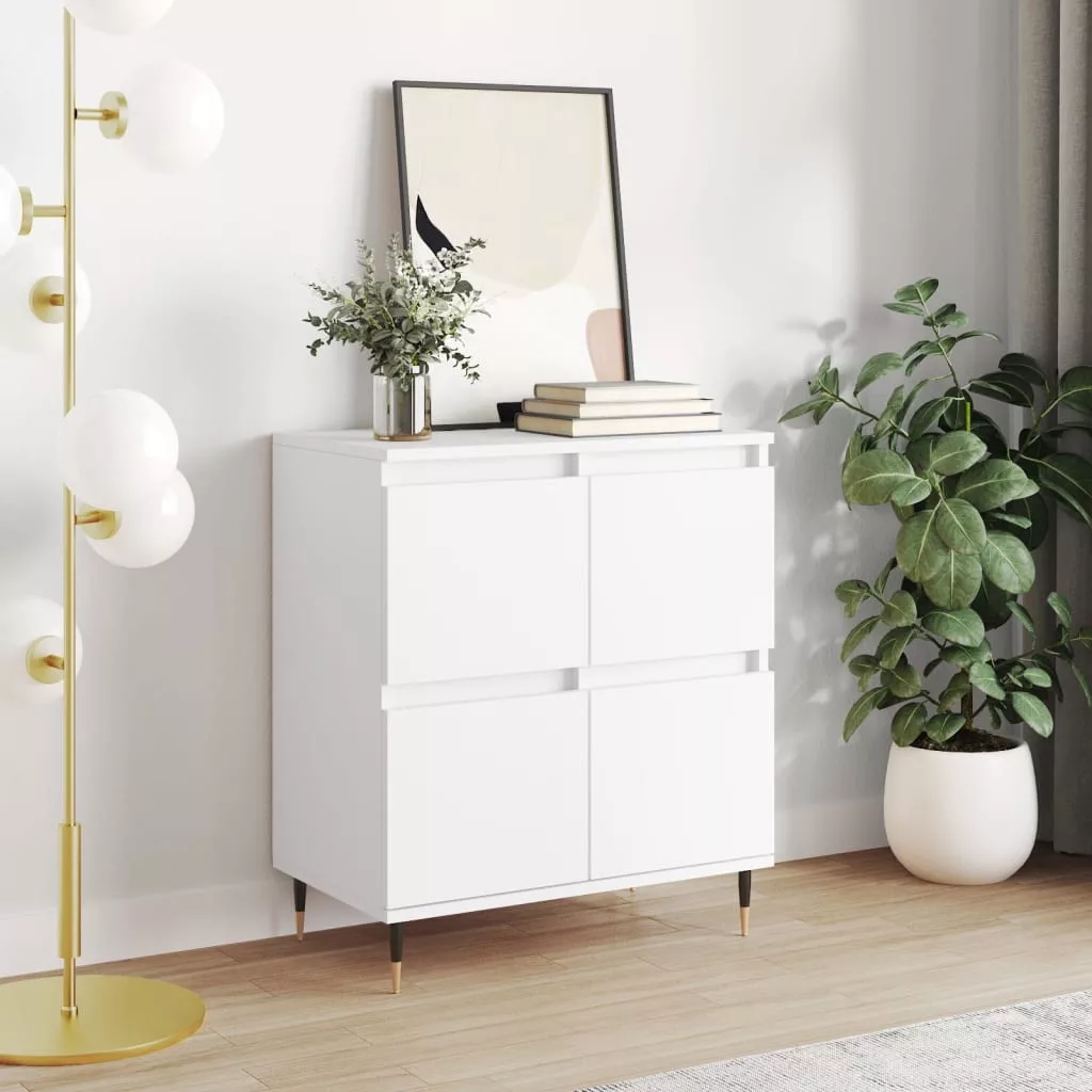 Ez a divatos, időtlen megjelenésű tálalószekrény otthona nagyszerű kiegészítője lesz. Tartós anyag: A szerelt fa kivételes minőségű, sima felületű, szilárd, stabil, és ellenáll a nedvességnek. A szerelt fából készült tárolószekrény nedves ruhával könnyen tisztítható.Bőséges tárolóhely: A szekrény bőséges helyet biztosít alapvető holmijai kézközelben történő rendezett tárolásához.Bemutatófunkció: A tálalószekrény teteje tökéletes dekorációs tárgyak, képkeretek és cserepes növények megjelenítésére.Vaslábak: A kisszekrény vaslábai szilárdságot és stabilitást biztosítanak. Figyelem:A felborulás elkerülése érdekében ezt a terméket a mellékelt fali rögzítőeszközzel kell használni.