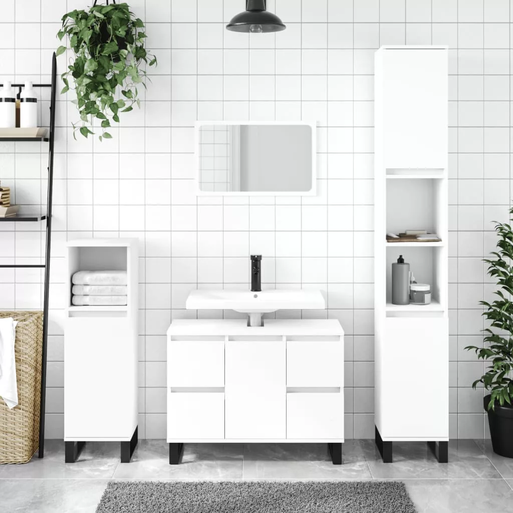 fehér szerelt fa fürdőszobaszekrény 30 x 30 x 100 cm