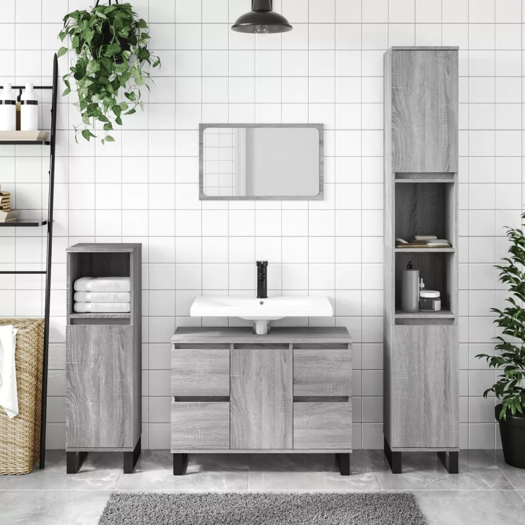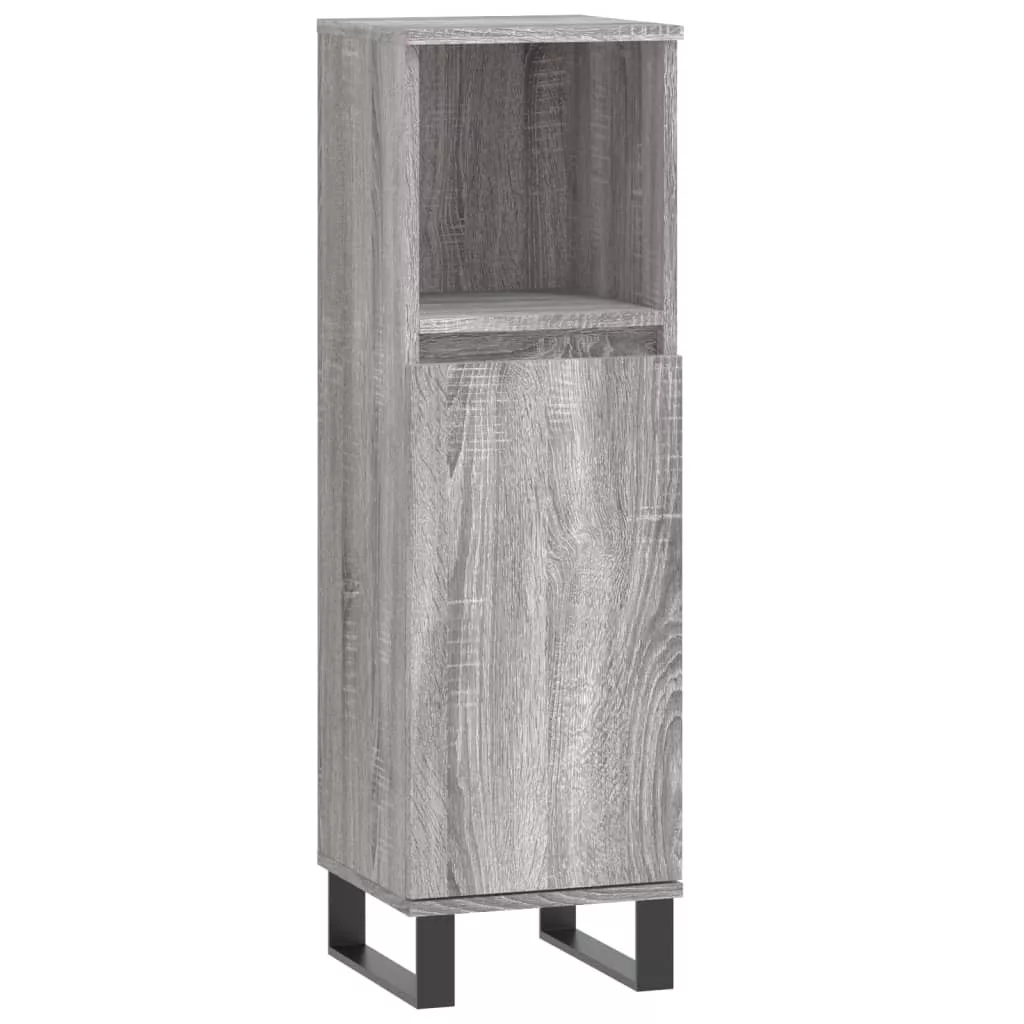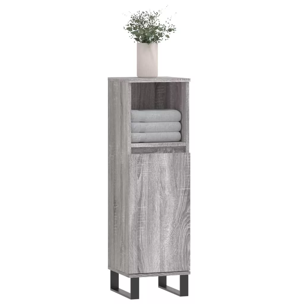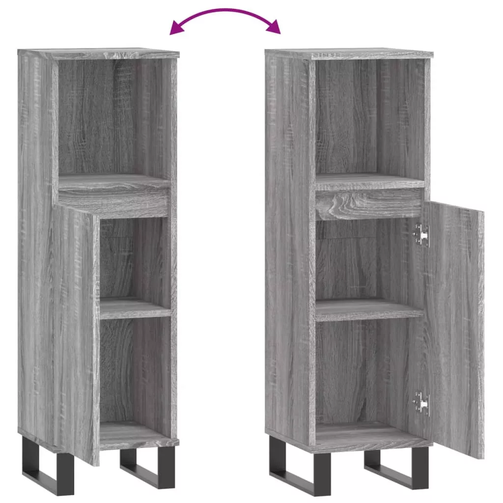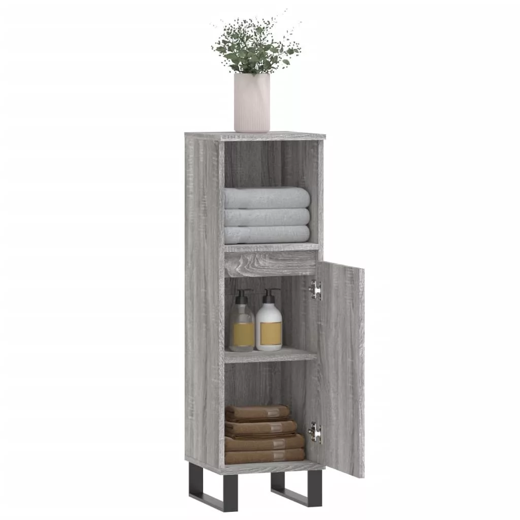szürke sonoma színű szerelt fa fürdőszobaszekrény 30x30x100 cm