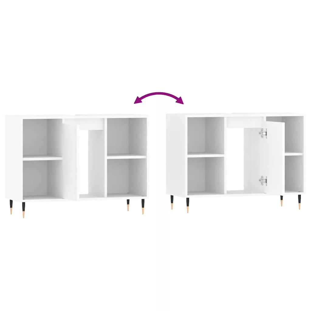 magasfényű fehér szerelt fa fürdőszobaszekrény 80 x 33 x 60 cm
