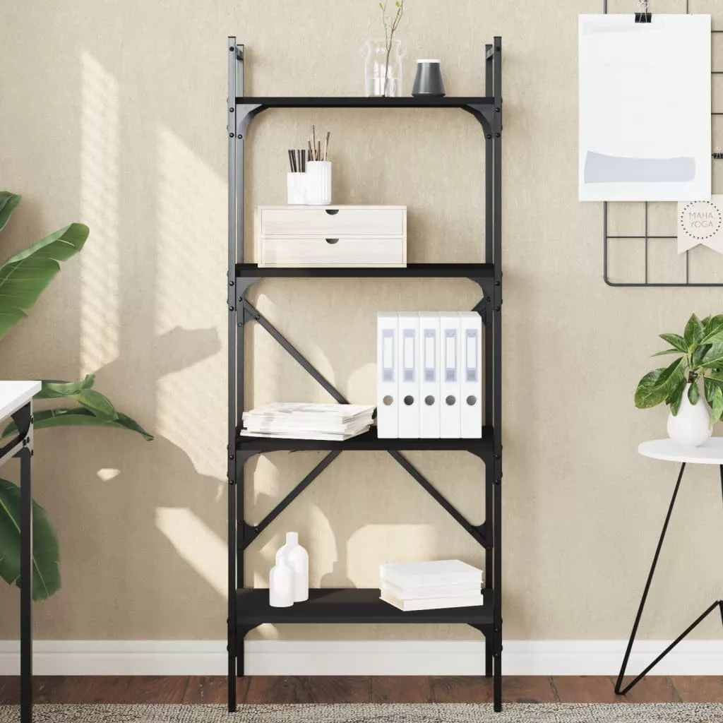 4 szintes fekete szerelt fa könyvespolc 56 x 31,5 x 138,5 cm