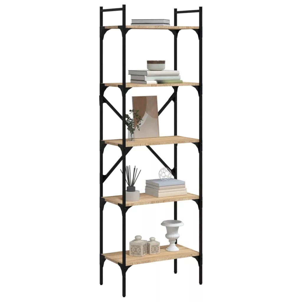 5 szintes sonoma tölgy színű fa könyvespolc 56 x 31,5 x 174 cm