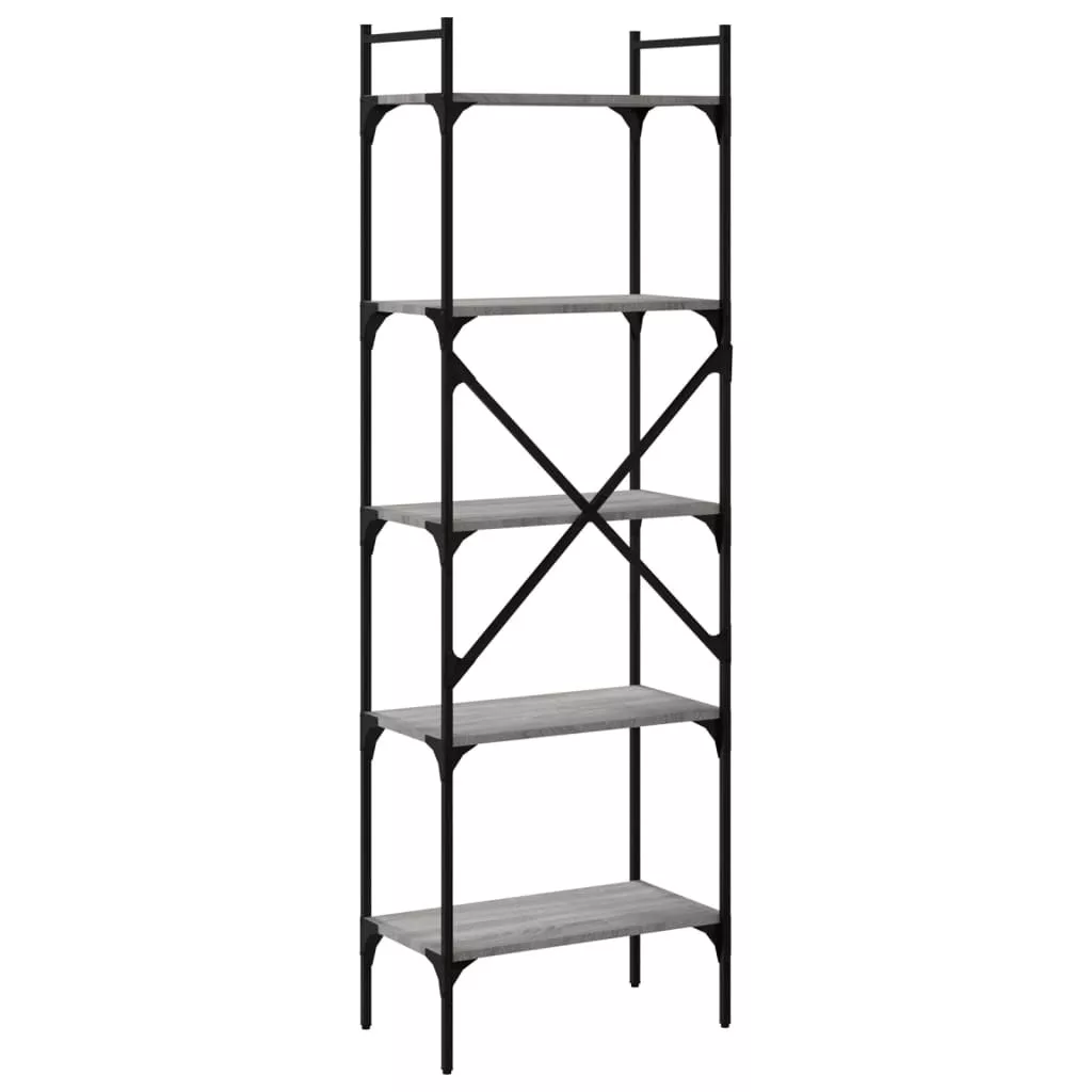 5 szintes szürke sonoma színű fa könyvespolc 56 x 31,5 x 174 cm