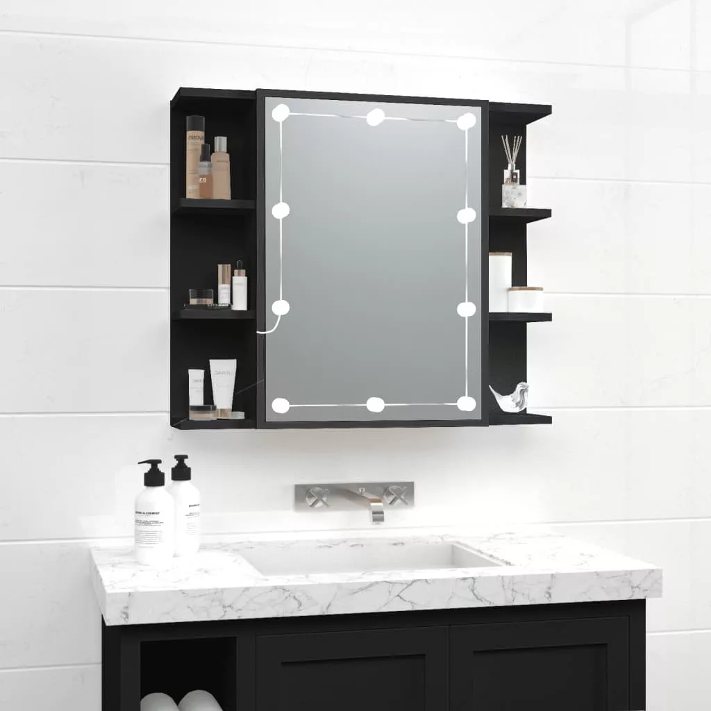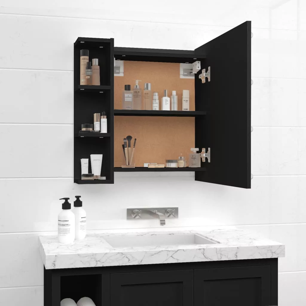 fekete tükrös szekrény LED-ekkel 70 x 16,5 x 60 cm