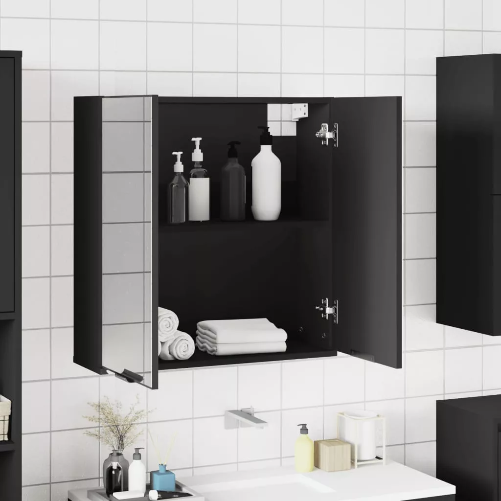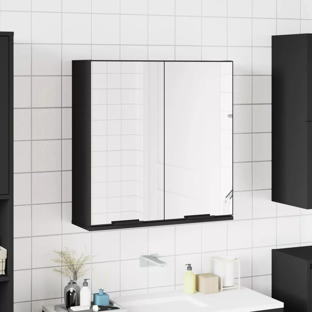 fekete szerelt fa fürdőszobai tükör 64 x 20 x 67 cm