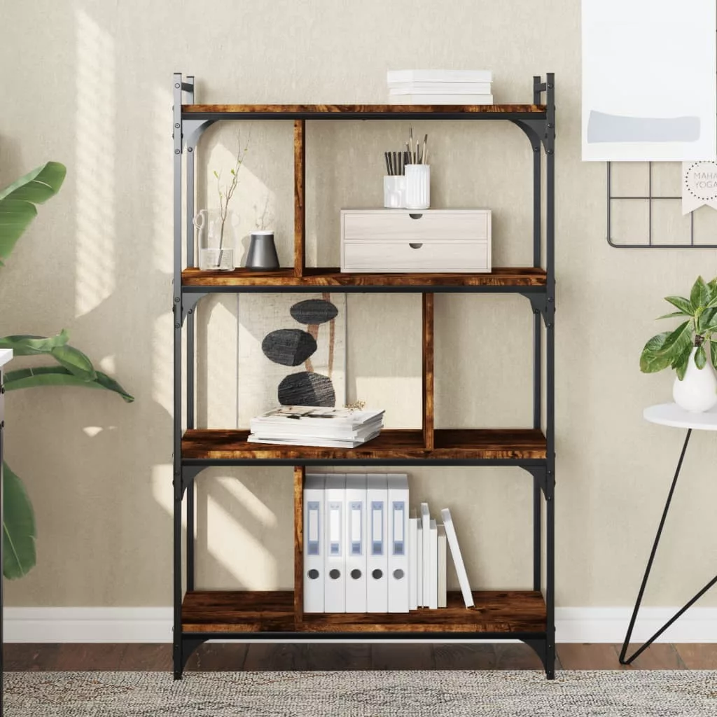 4 szintes füstös tölgy színű fa könyvespolc 76 x 32 x 123 cm