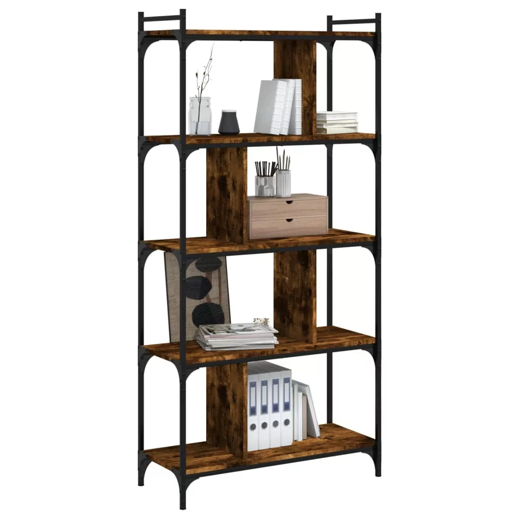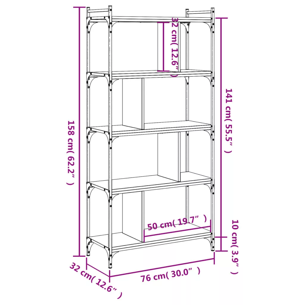 5 szintes füstös tölgy színű fa könyvespolc 76 x 32 x 158 cm