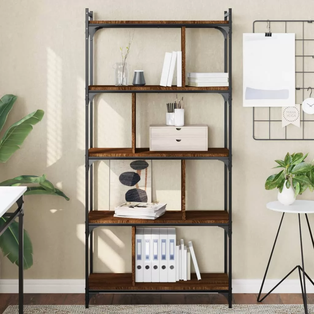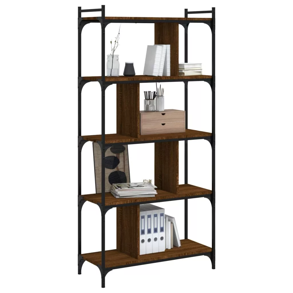 5 szintes barna tölgyszínű fa könyvespolc 76 x 32 x 158 cm