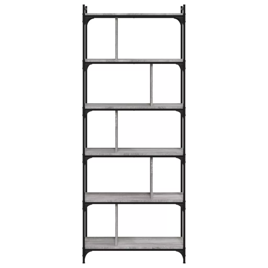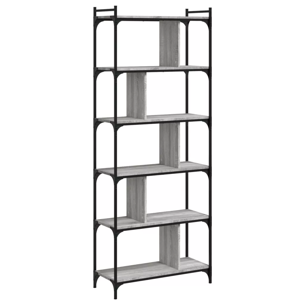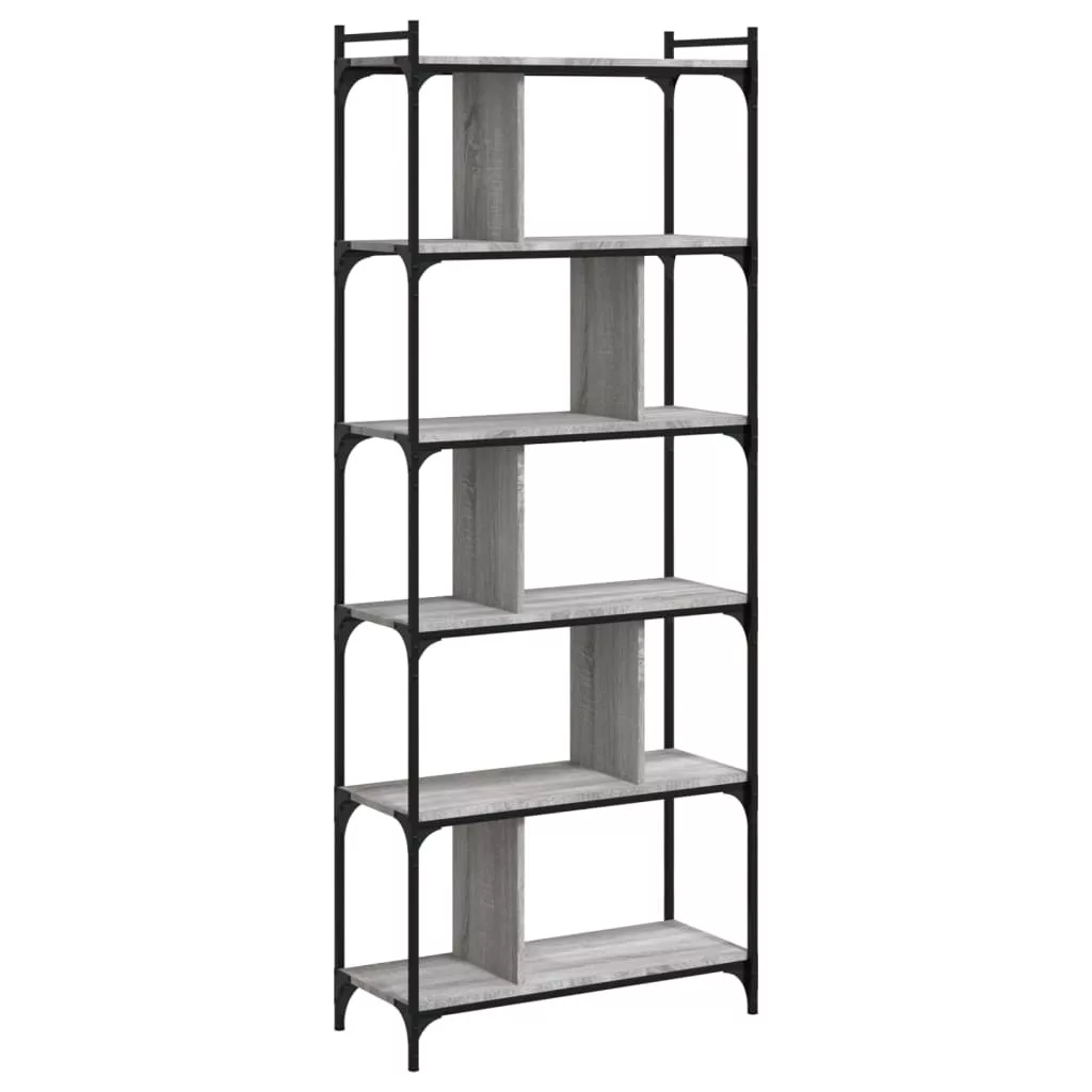 6 szintes szürke sonoma színű fa könyvespolc 76 x 32 x 192 cm