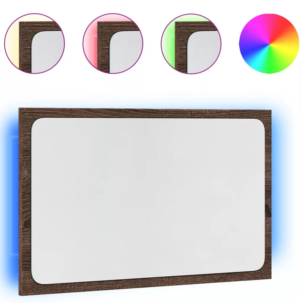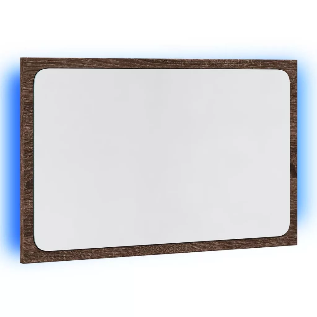 barna tölgy szerelt fa LED-es fürdőszobatükör 60 x 8,5 x 38 cm
